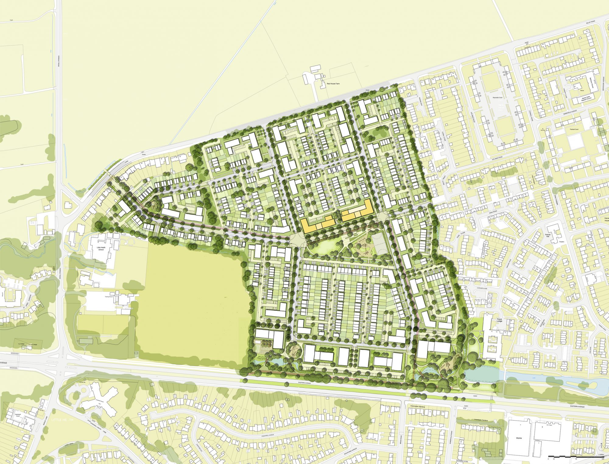 BPTW initially led the masterplan to bring together separate land parcels creating a design to guide future planning applications, on behalf of Bellway homes. The masterplan is embedded with a series of key spatial principles forming a network of avenues and boulevards, further emphasising three well-defined character areas.