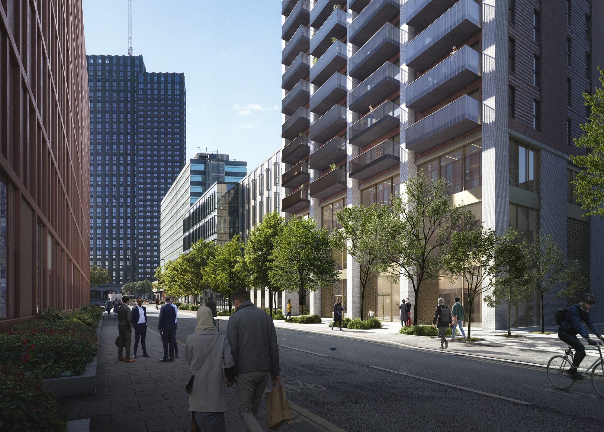 Situated in Croydon’s tall building zone where the Local Authority set a high design quality threshold for proposals coming forward in the area, BPTW responded by carefully designing a scheme with a striking appearance that expresses its verticality and holds its visual presence from distance. The design includes a varied material palette, expressive brick piers with deep reveals, and a variety of brickwork details. From the public realm, the experience of the proposal fronting on to Dingwall Road is fully activated with the healthcare centre, residential entrance and gym forming the first three levels of the scheme. As the site sits across the road from Ruskin Square, BPTW developed a public art narrative for the façade inspired by the prominent writer and philosopher, John Ruskin, which will be developed further in collaboration with a local artist.