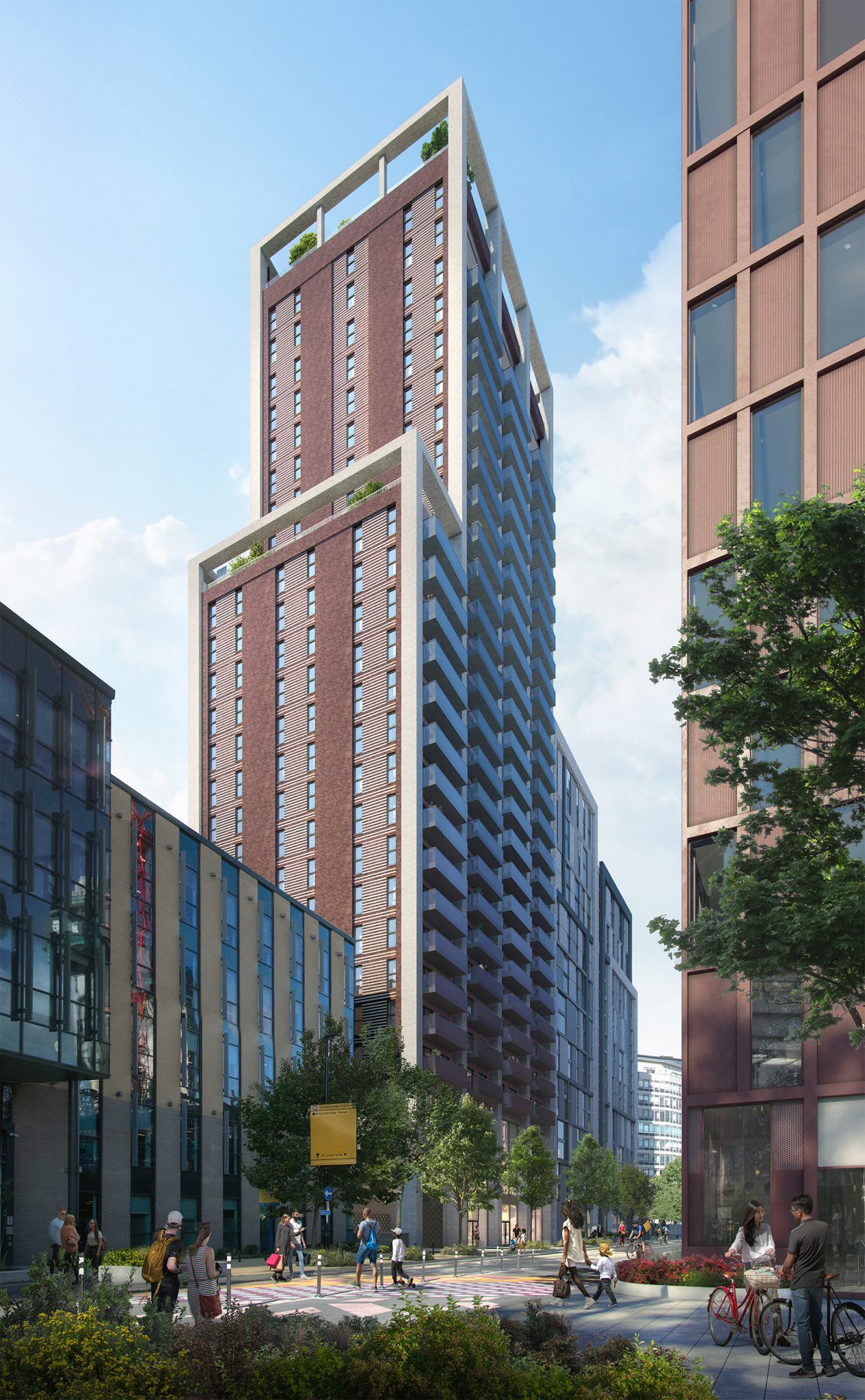 The scheme includes 199 apartments and provision for a much needed 1186m2 community Healthcare Centre in the area fronting on to Dingwall Road. The apartments are split across two buildings of 28 and 9 storeys connected by a communal landscaped podium. In addition, the scheme will also provide a dedicated communal resident’s lounge, a residents’ gym and various landscaped terraces. BPTW redesigned the site from a previous planning permission with buildability challenges. Our new design increased the height by four storeys, improved viability, transformed the external appearance of the building, reconfigured layouts, and incorporated a second staircase to both buildings in line with regulation changes under the Building Safety Act and the London Mayor’s mandate.