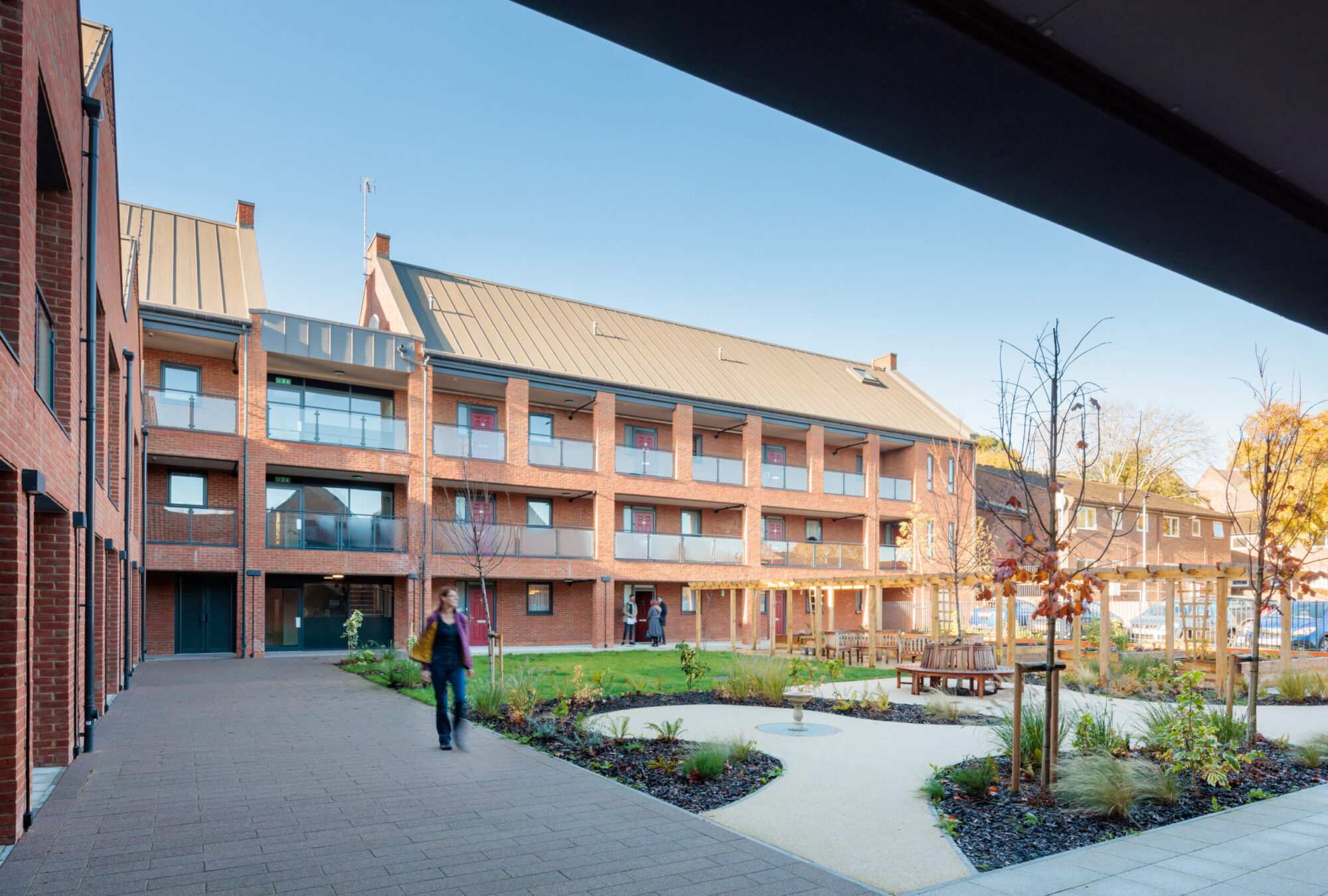 Valley Drive is an age-friendly housing scheme consisting of two 100% affordable housing buildings, one general needs, and one for over 55’s independent living. A generous communal courtyard provides high-quality amenity space for neighbourly interaction and outdoor activities, exercise, and gardening. BPTW developed specific downsizer typologies, informed by research with the Council and elderly residents. As a result, our ‘one-bedroom plus’ typology was developed with flexibility in its layout to cater to ‘right sizer’ needs. This typology is now being rolled out across Gravesham Borough Council’s over 55’s new build programme.