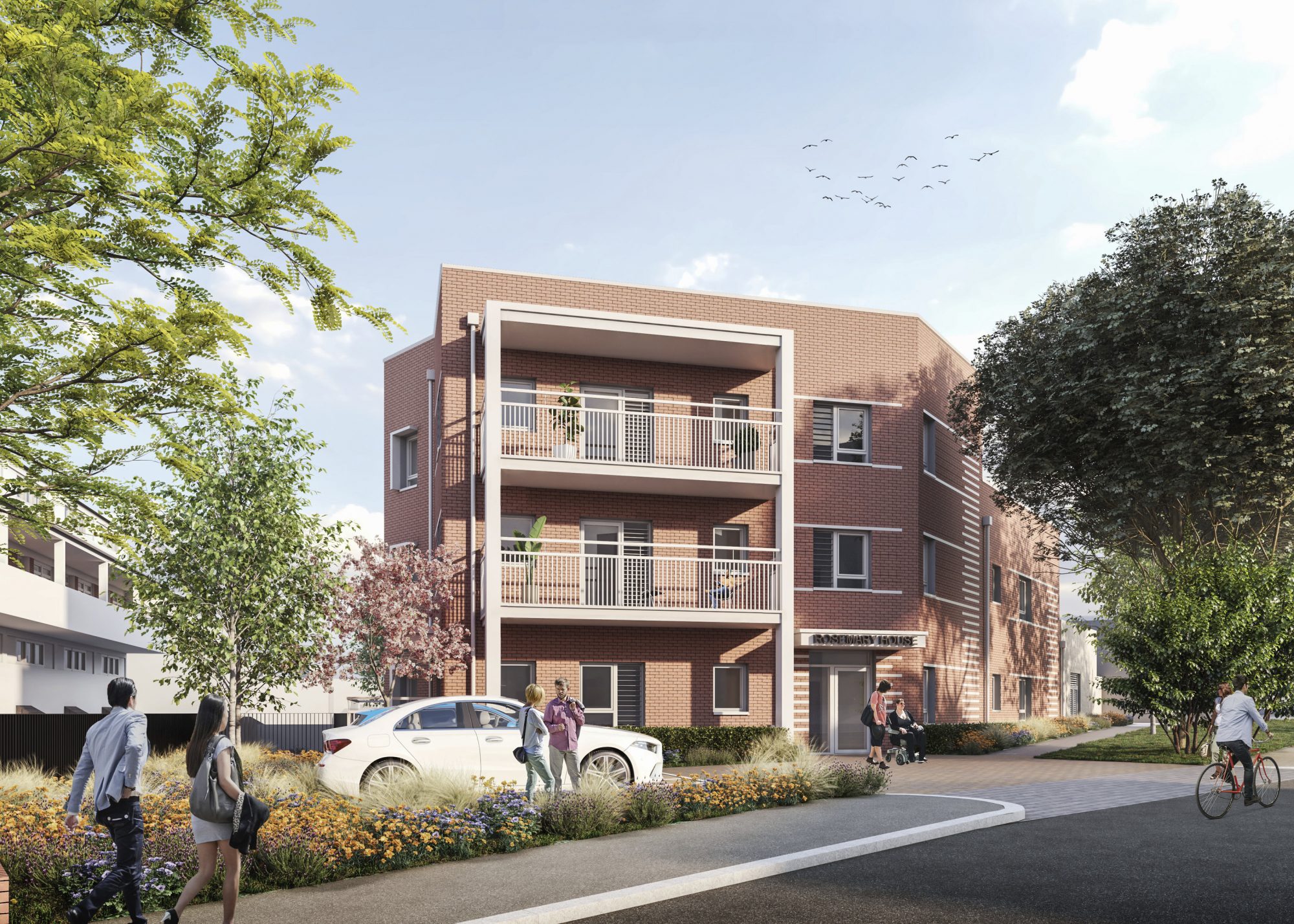 At Bessborough Road, BPTW has developed eight one-bed homes for residents with learning disabilities in collaboration with Wandsworth Borough Council’s Development team (Homes for Wandsworth), specialist occupational therapist and Adult Social Service Commissioning teams. The new supported homes are fully adaptable to accommodate the largest variation in needs, and the ground-floor apartments are fully wheelchair accessible. A sensory garden caters to residents’ needs and a fully inclusive, refurbished playground has been designed for the neighbourhood’s children to use. The project aims to achieve Passivhaus Low Energy by incorporating brise-soleil, louvres and MVHR/EAHPs systems to mitigate overheating. A biodiverse roof and PV Panels also improve the building’s energy efficiency and reduce energy bills for residents.
