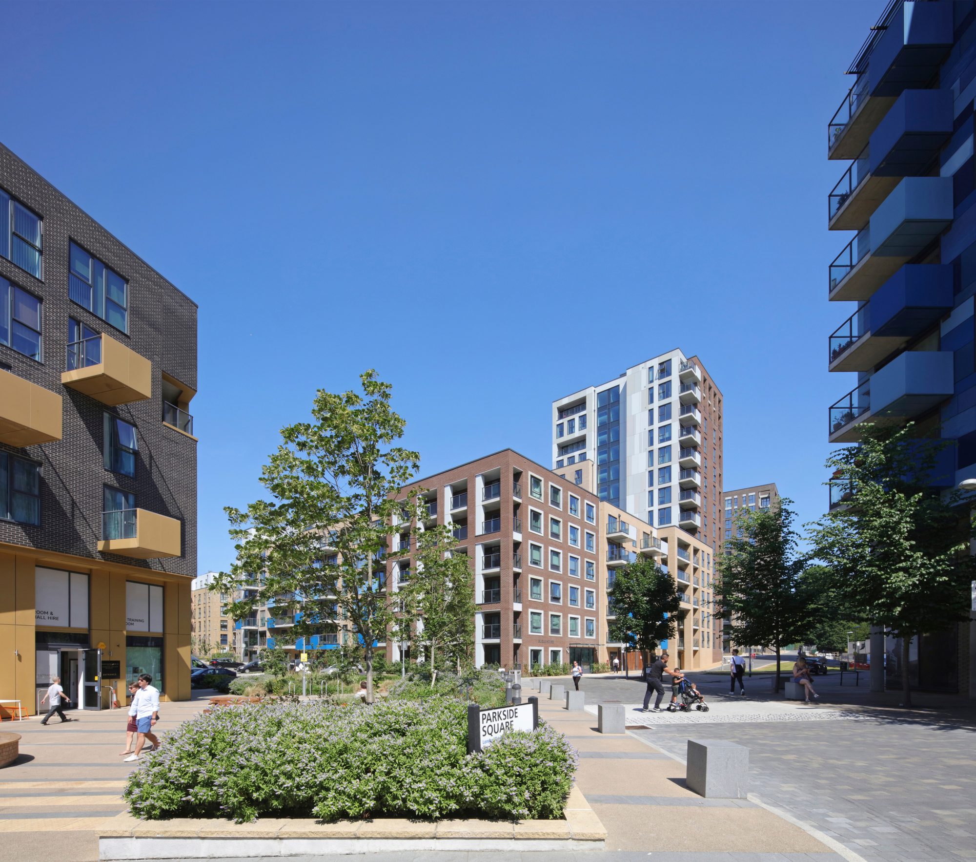 Parkside is continuing the transformation of the Heathside and Lethbridge Estates into a high-density, mixed tenure development. The scheme is delivering 1,225 homes in buildings ranging from 3 to 17 storeys in height along with a community centre and retail spaces.