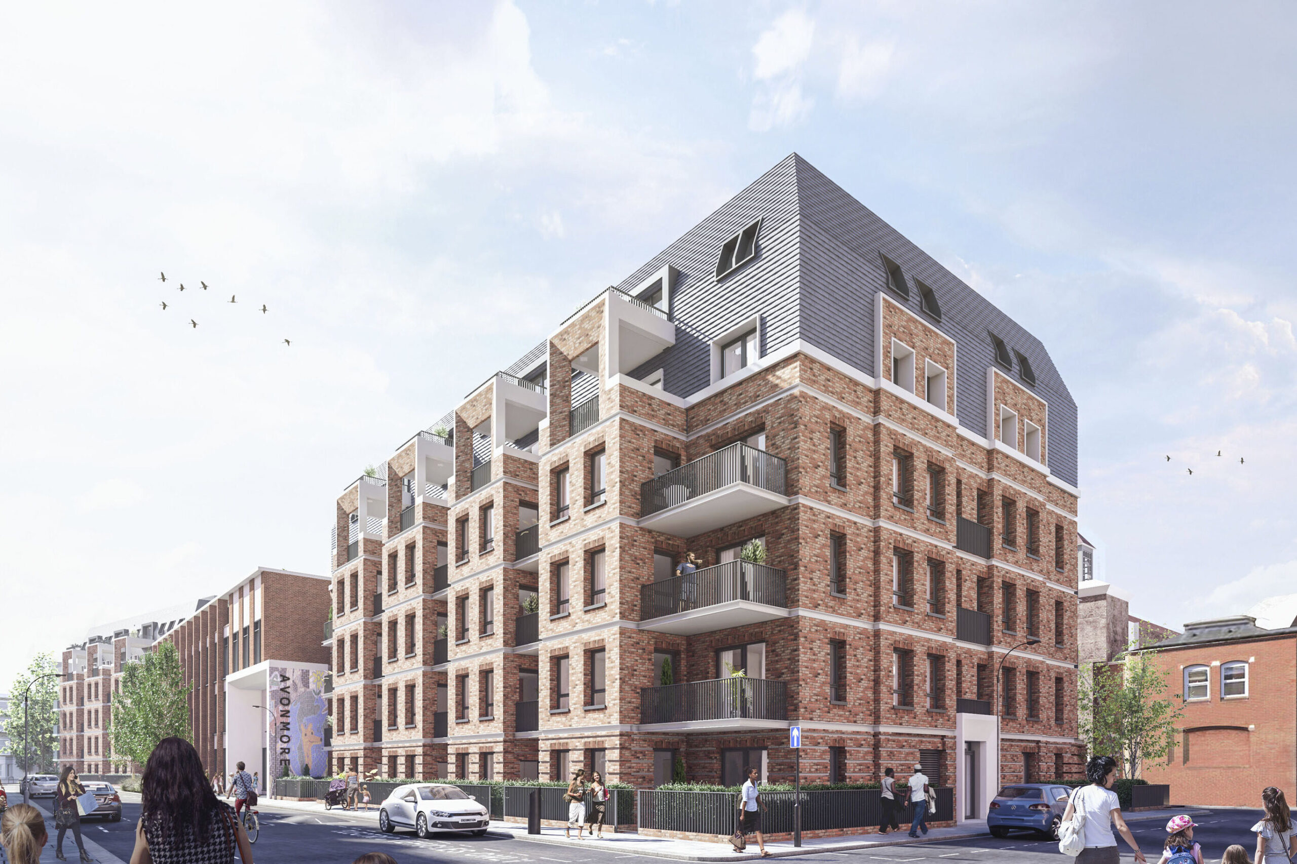 BPTW’s site layout positioned the school centrally and the new homes flanking the school on both sides to maintain a sense of community with neighbouring apartment buildings. The school and two residential buildings range in height from three to six storeys to respond to the scale and proportion of the surrounding streets and dense urban environment. The efficient site arrangement accommodates 240 school pupils whilst providing ample space for a school playground. The local vernacular of mansion blocks helped inform the proposed design, inspiring the façades and brick-led material palette.