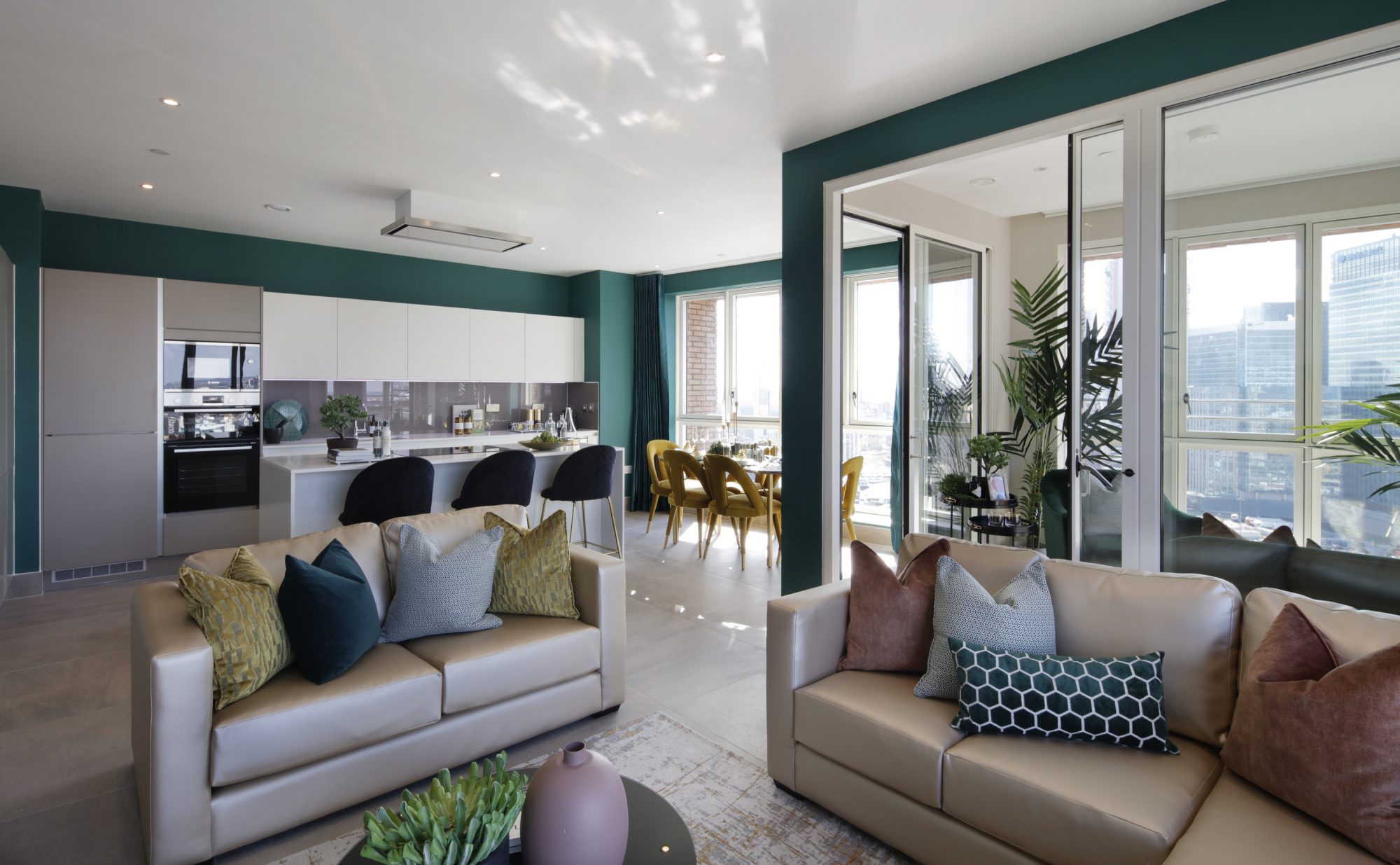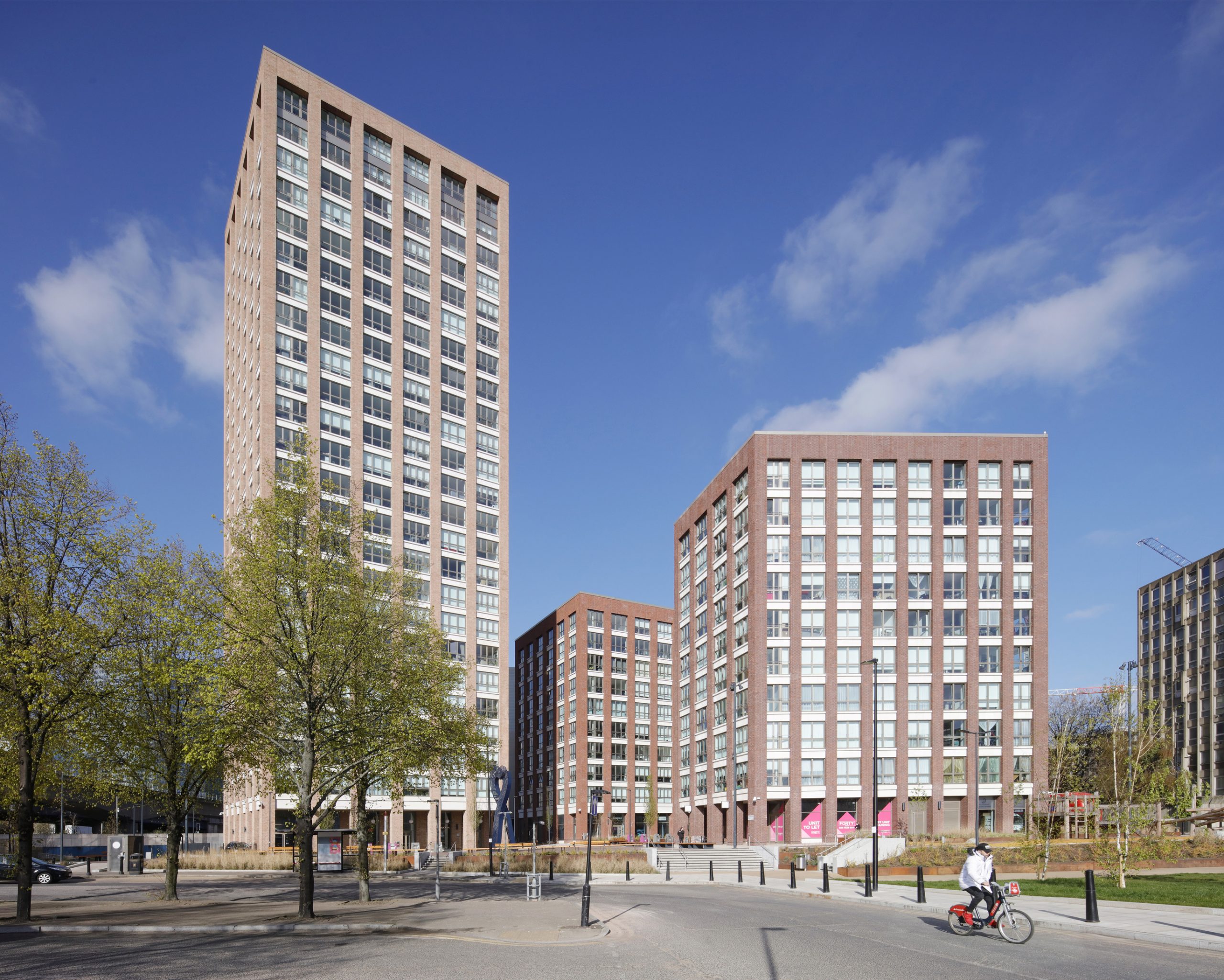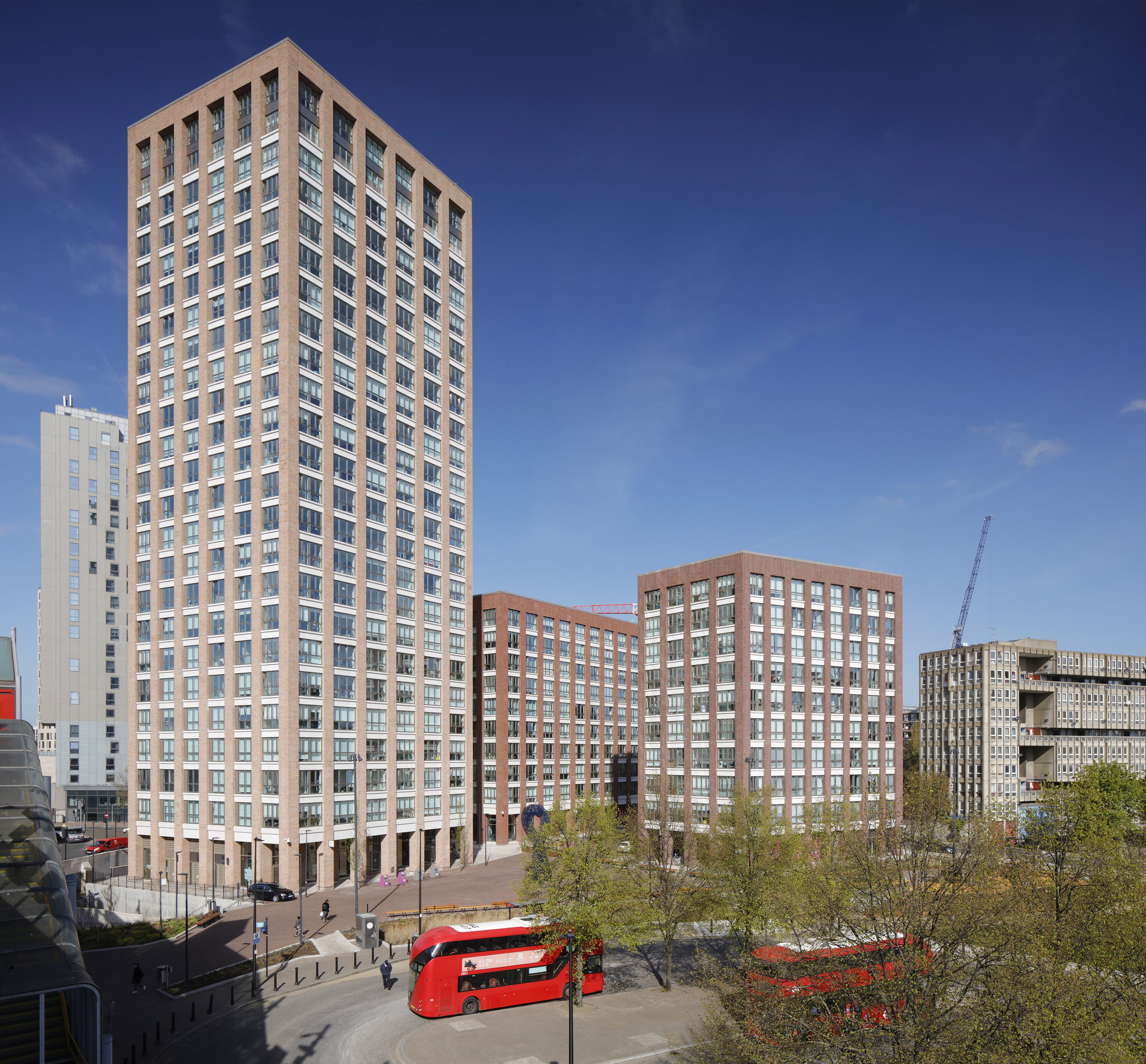 Phase 1B has been designed as a ‘family of buildings’ with a distinct identity that was created by employing a common architectural language across all buildings. The tenure-neutral scheme also achieves 100% dual aspect apartments, offering stunning views towards the City of London and river Thames. The apartments are a mix of private sale, intermediate and social tenure, with sizes varying between one-, two- and three-bedrooms and including 27 wheelchair-accessible homes.