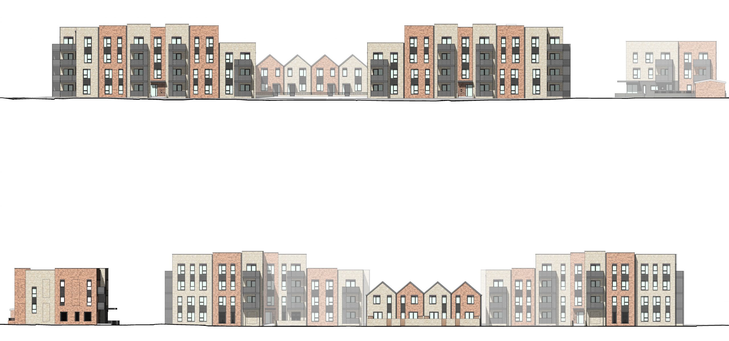 The development provides 75 new houses and apartments, and a community centre across four buildings arranged to integrate with the immediate surroundings. The design responds to the neighbouring streetscape in scale, rhythm and proportion to create aesthetic harmony between new and existing buildings, assisted by active street frontages and retained green spaces. Inspired by the local architectural vernacular, the design uses a simple brick material palette and reinterprets traditional details in a contemporary way to create a strong sense of place.