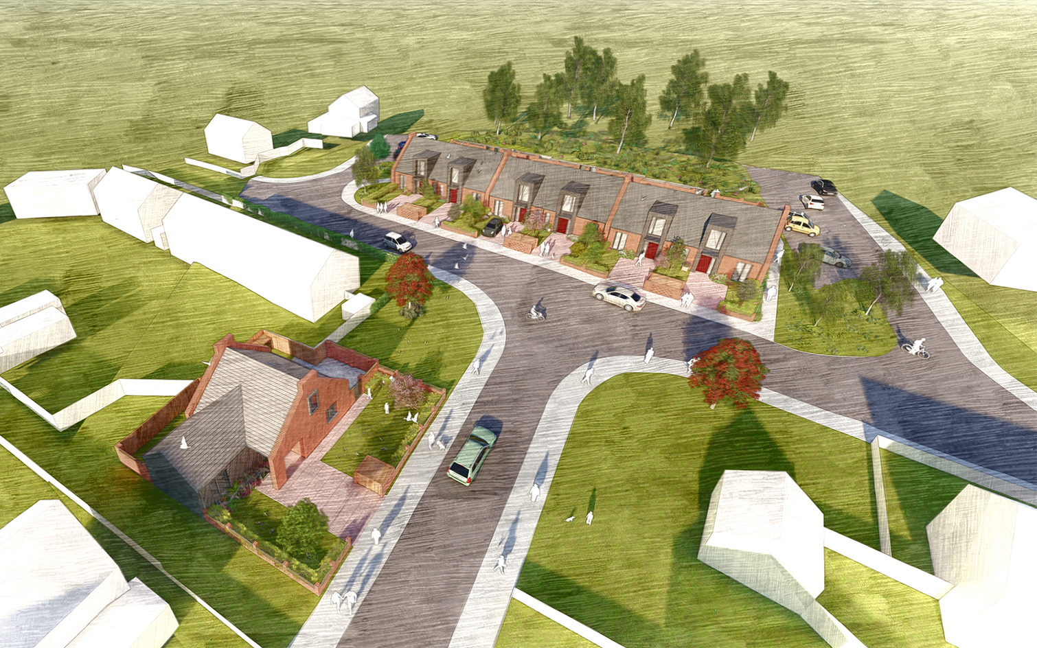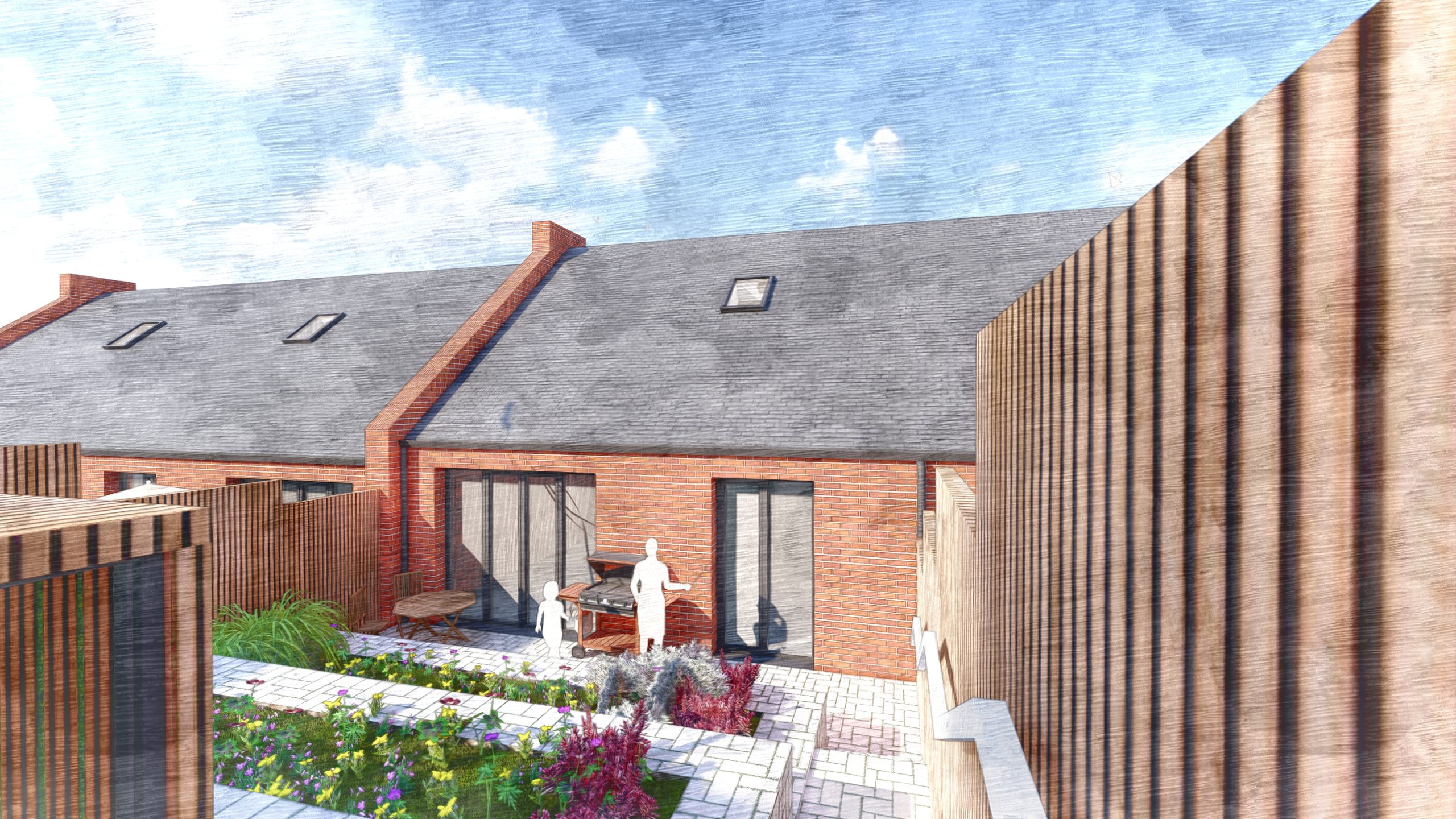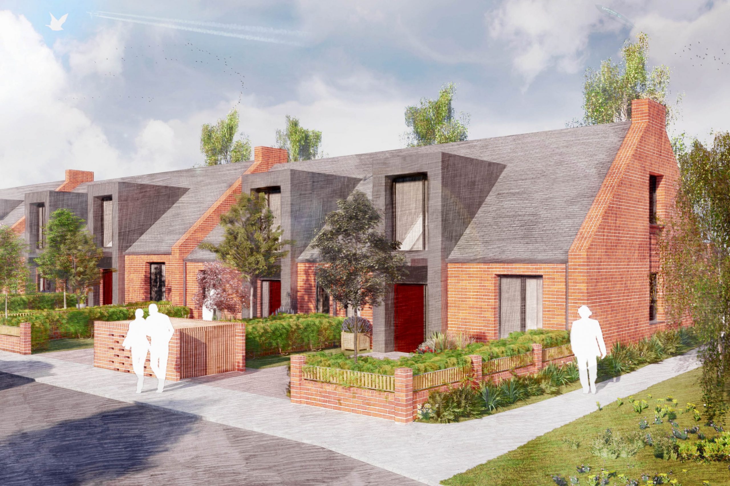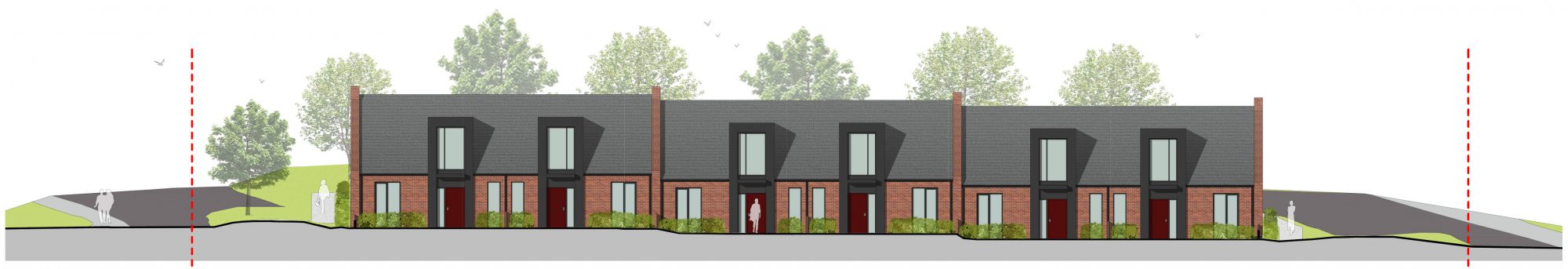 For the project BPTW developed a unique housing typology for 6 terraced houses and 1 detached house designed specifically for senior downsizers. An accessible ‘one bed plus’ design has been provided with adaptability for future needs, with the main living and sleeping space on the ground floor. The provision of an extra living space on the first floor, offers flexibility to accommodate visitors, future carers or use as an additional recreational area. All homes are wheelchair accessible and the remaining open space to the east of the row of terraces is to be improved with additional trees and easily accessible play and recreational space for the use of the existing and the new residents.