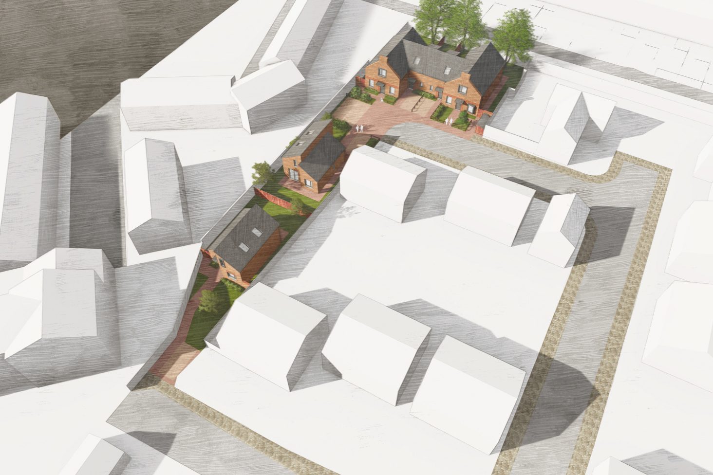 Situated to the southwest of Gravesend, the project pulls inspiration from the surrounding vernacular. Analysis of the rhythm, proportion and character of buildings in the immediate area revealed opportunities to design features that ensured the homes integrate with its surroundings, whilst giving a contemporary feel to an otherwise quite traditional form. Use of a simple material palette was a key principle of the design which, as well as active frontages, retained green spaces and continuity of the streetscape helped blend between the old and the new.