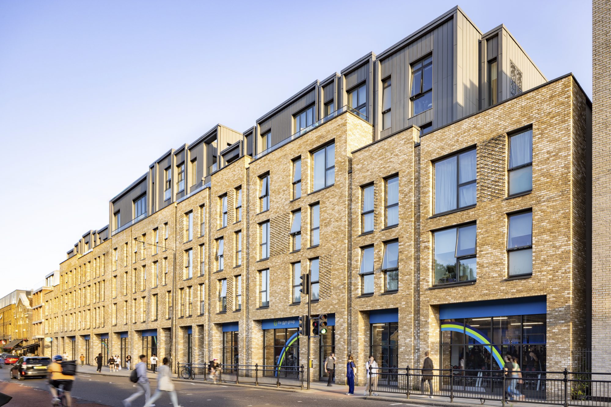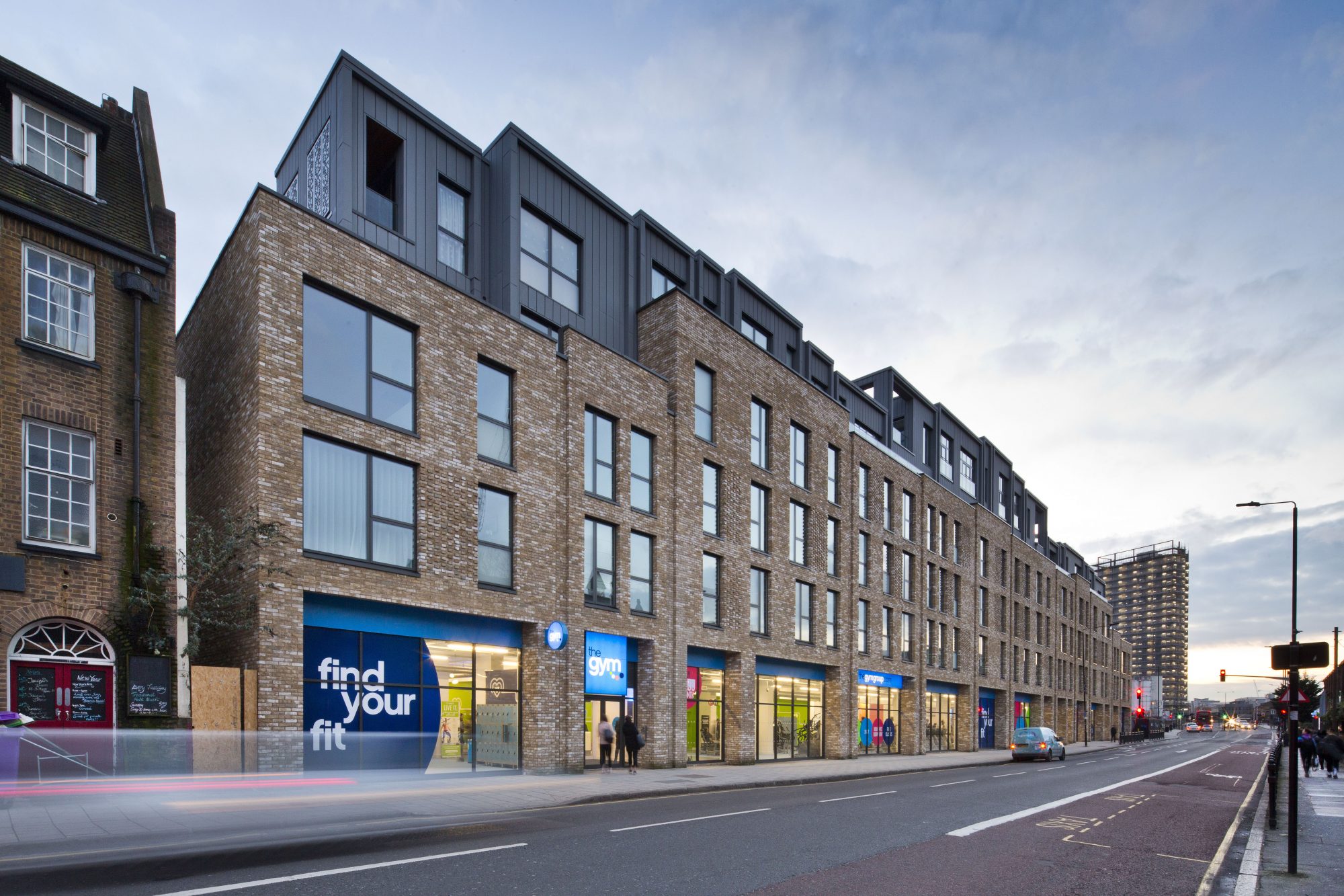Contemporary in form and considerate in approach, the scheme features a series of high quality apartments above a row of retail units, creating a bold frontage towards Creek Road. This steps down to a more domestic scale along a quieter lane that runs parallel to the main road. Previously underused, it is now home to a row of mews houses, which back onto a popular park.