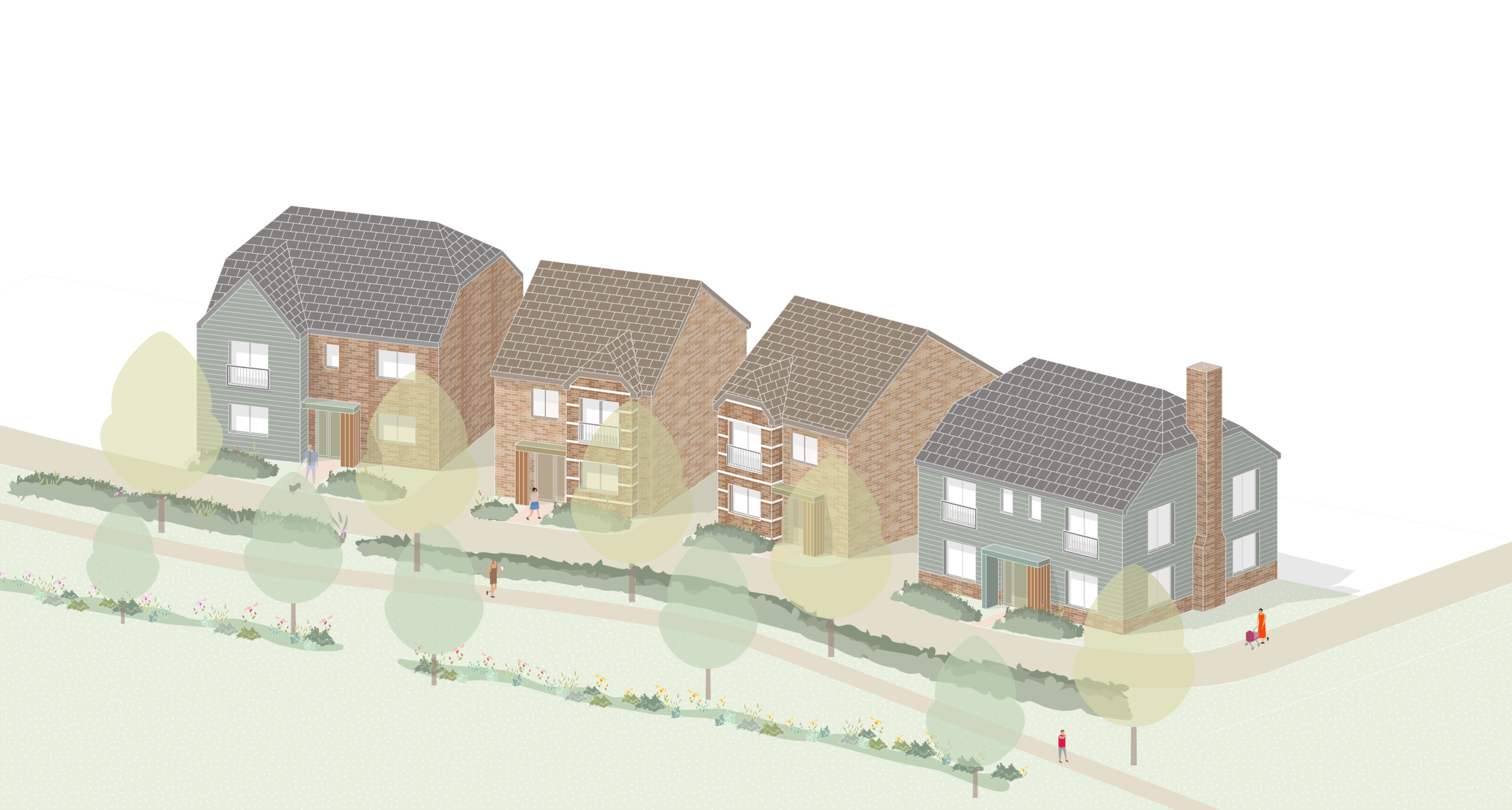 The placemaking approach strengthens links to the town centre, enhances connections to the countryside, and defines a mixed-use community at its heart, integrated with the landscape. The associated design coding establishes a distinctive character for the new neighbourhood inspired by the site’s aerodrome heritage, Neo-Georgian character evolved from the historic Welwyn Garden City town centre, and the rural heritage of adjacent historic villages.