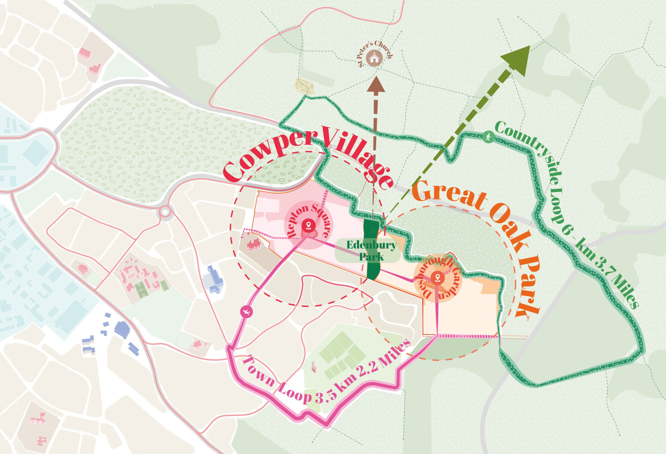 The Edenbury Design Code is a comprehensive, landscape-led code that strengthens connections between the town and countryside for a new urban extension of a mixed-use community of 845 homes in Welwyn Garden City. The code aims to foster a strong sense of community, promotes a distinctive local character, and supports a 10-year vision strategy through a strong placemaking approach.
