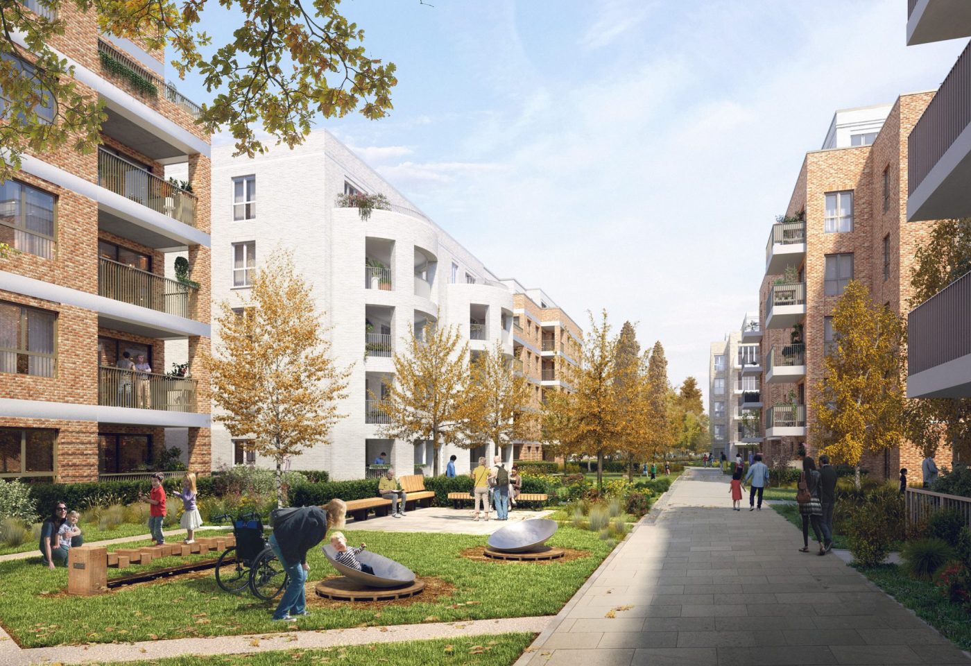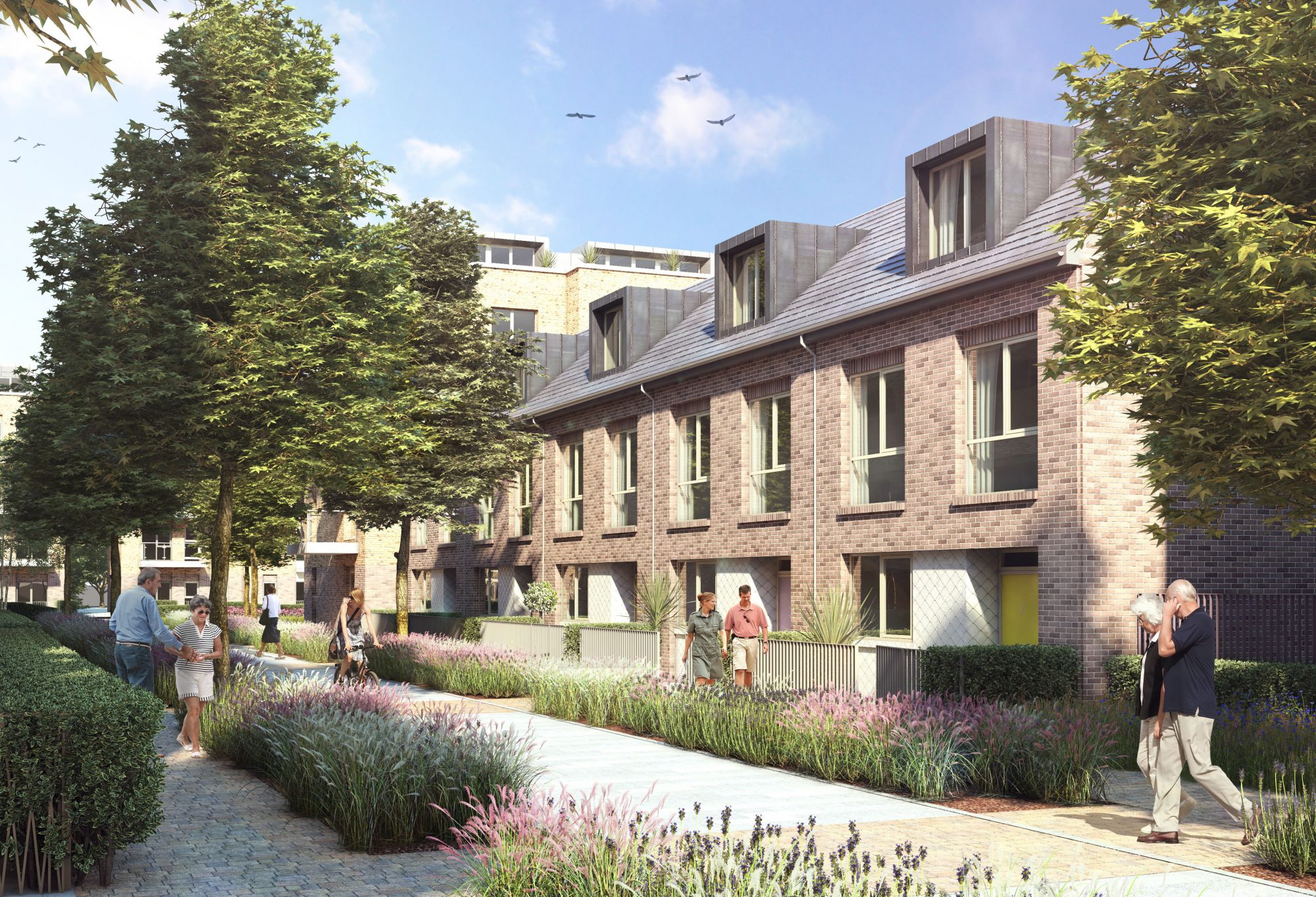 The major redevelopment will provide 452 new homes in buildings that range from 3 to 6 storeys, providing a mixture of homes reflecting local need including three to four bed houses. The design incorporates and connects the green spaces that surround the area, bringing the adjacent environment into the estate through landscaped pathways and a Garden Link.