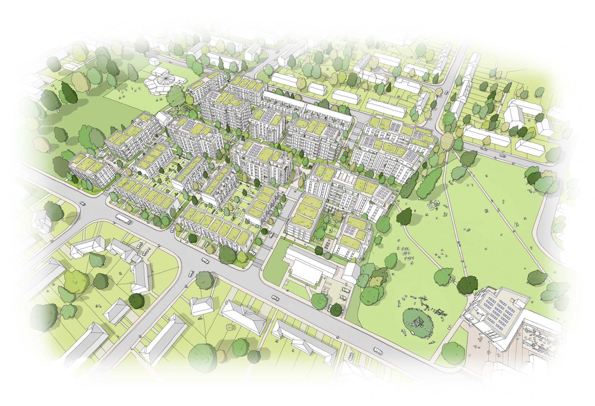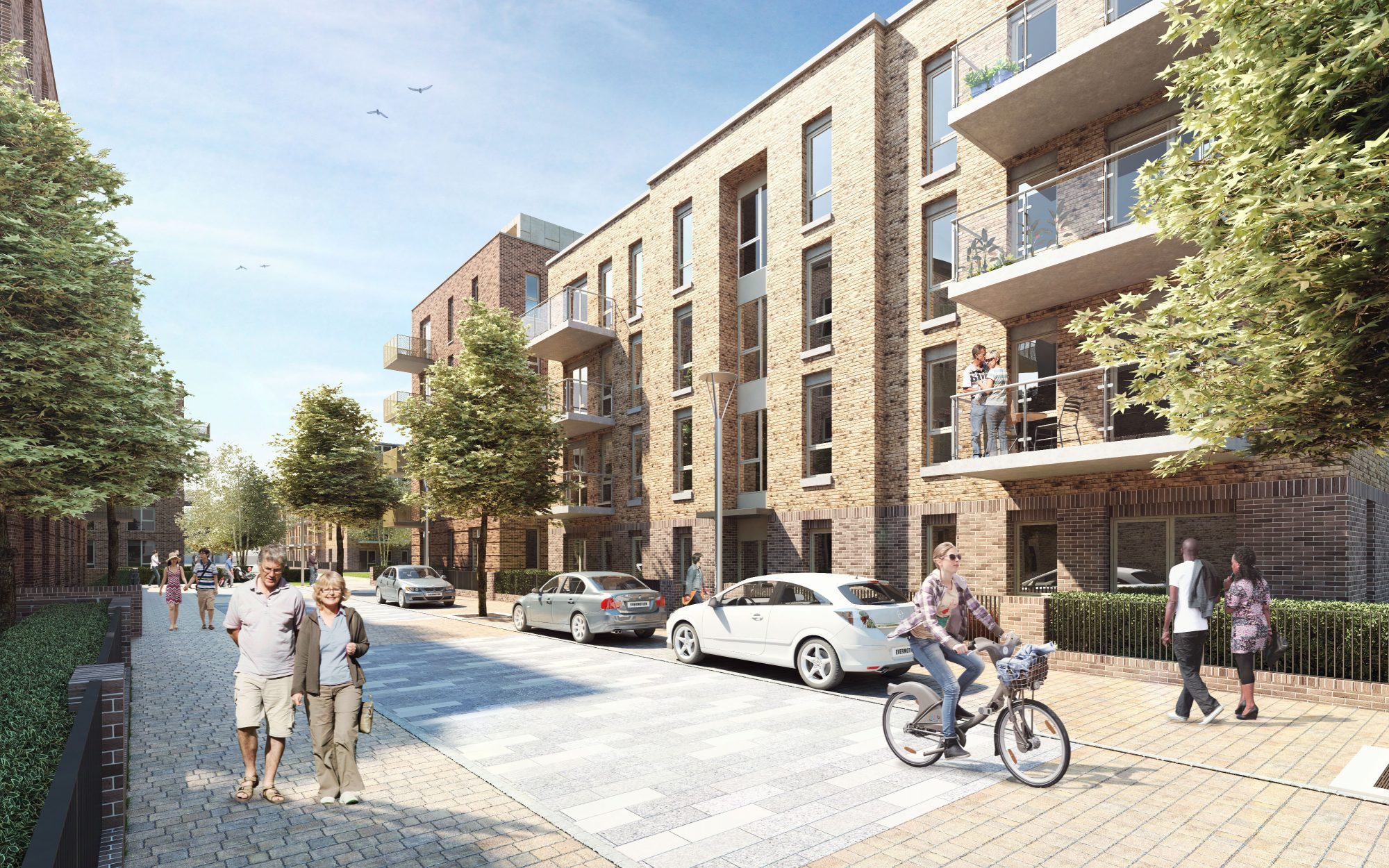 Working up to RIBA stage 3, BPTW has produced a design which reflects the unique and distinctive character of the Ham Close neighbourhood. The architectural vision has been developed using a mix of building types and variety across design elements to create a varied street scene built around defined character areas. The high-quality contemporary design will provide houses across a range of tenures and enhance amenity and community facilities.