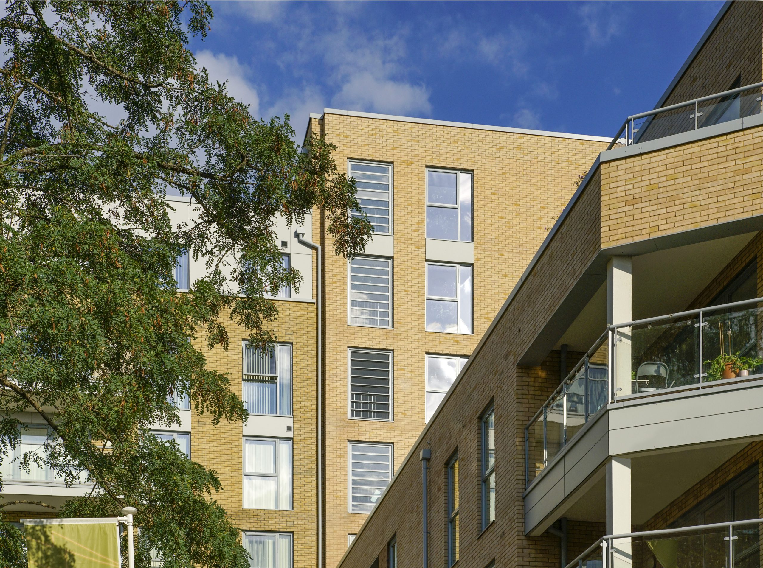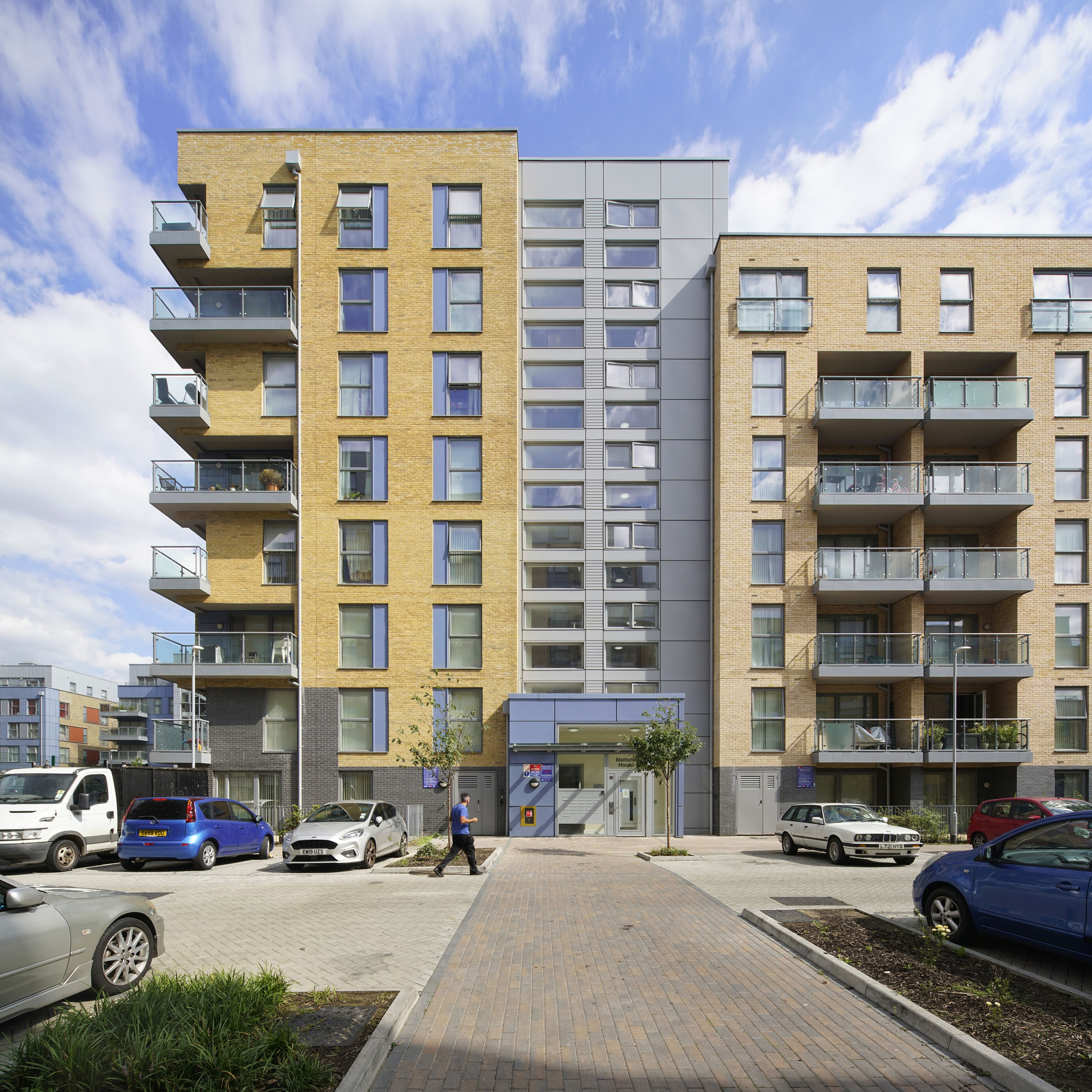 A sense of openness is achieved through generously glazed entrances and stair cores, and a mix of buff and red brick with other cladding materials help to emphasise entrances. At the heart of the development a community centre and play space offers activities and events for all residents.