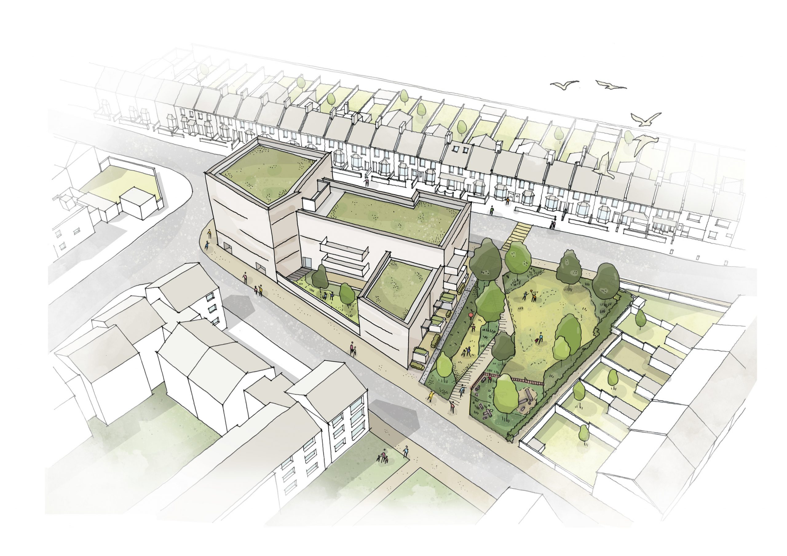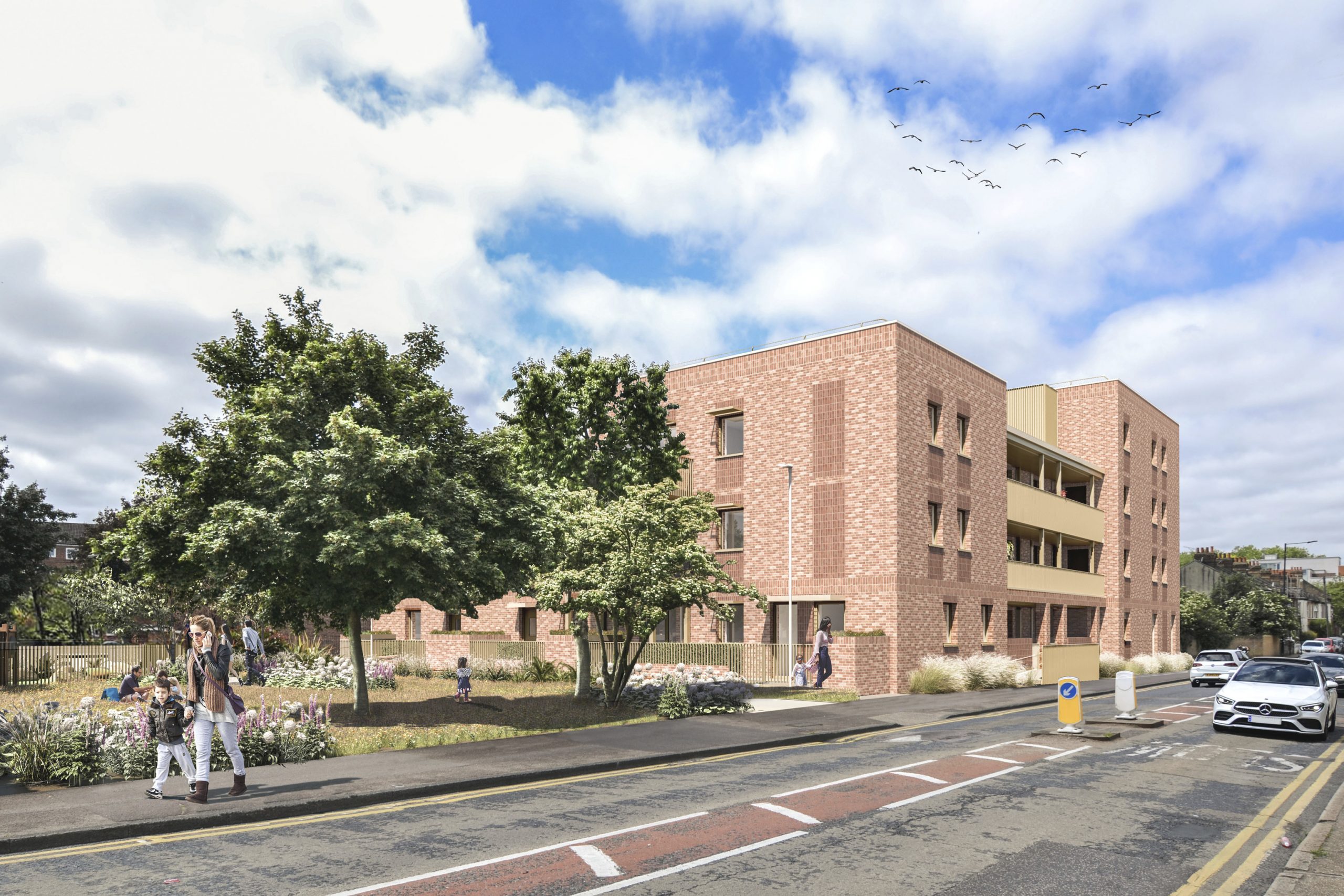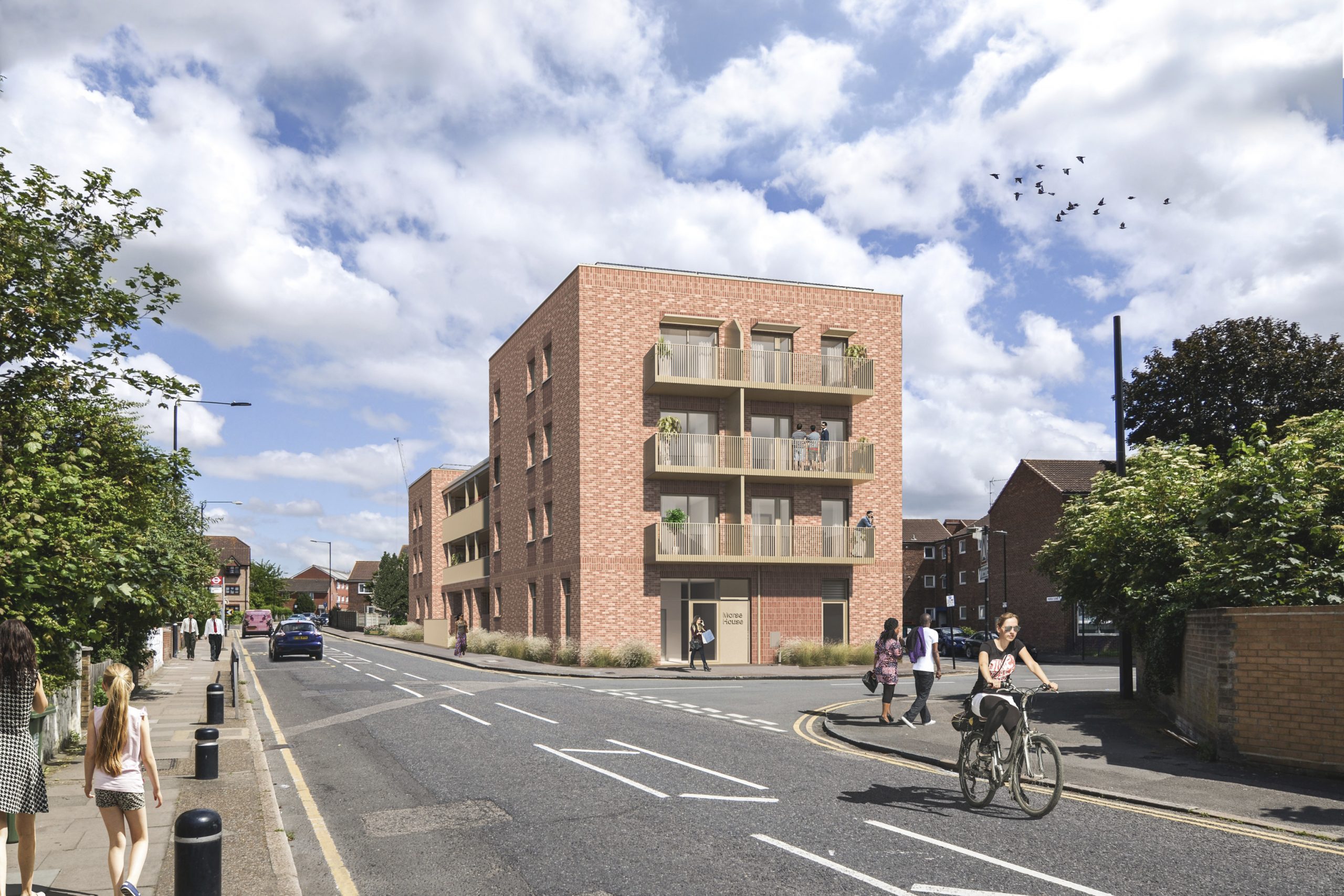 Appointed by LB Newham, this innovative four storey apartment building provides 17 new apartments and duplexes alongside a landscaped pocket park.