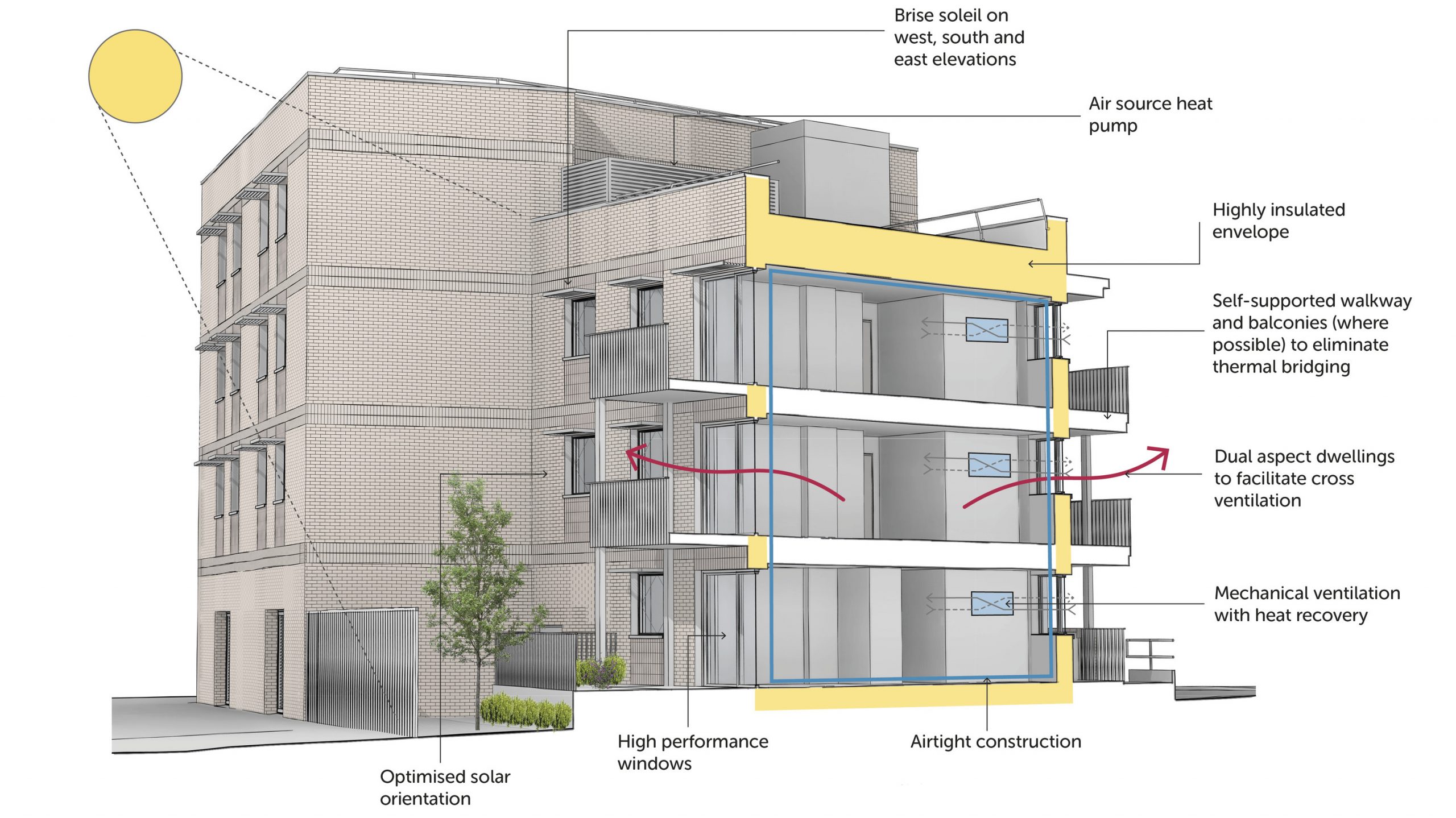 With energy efficiency principles at its core, Morse Close transforms an underutilised site into 17 affordable homes designed to Passivhaus Standards.