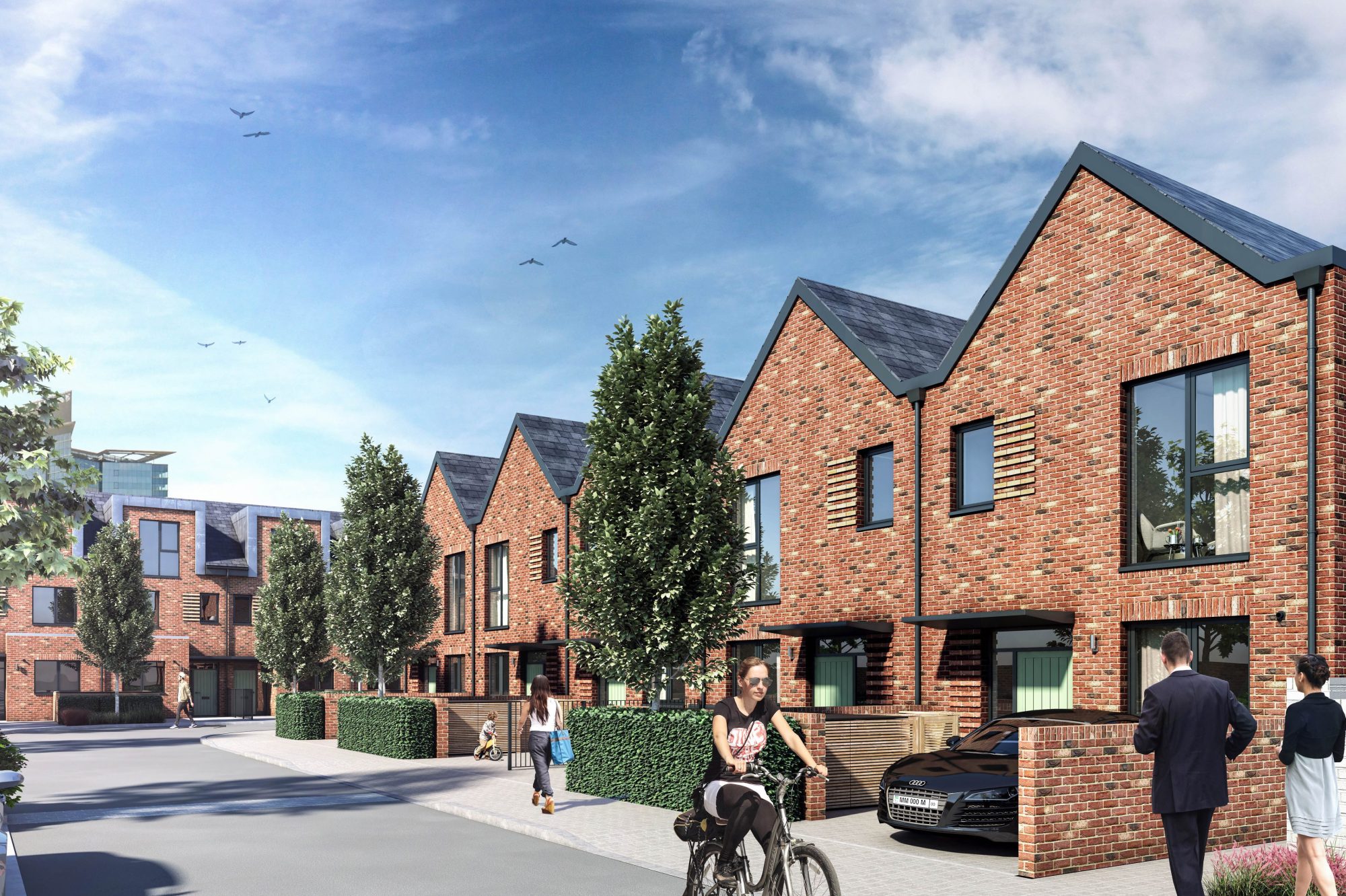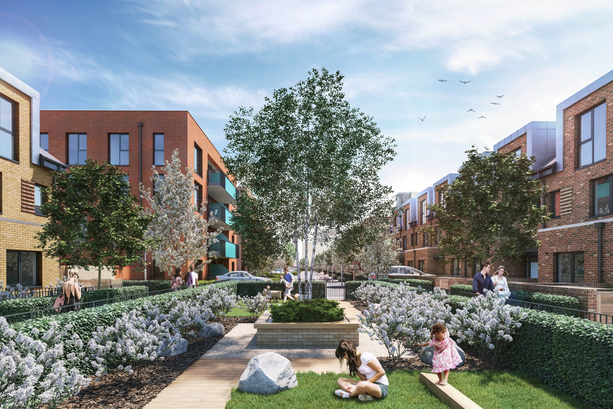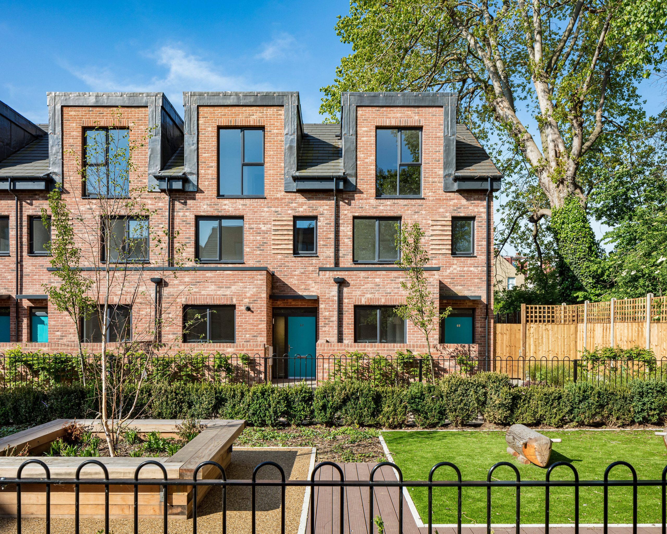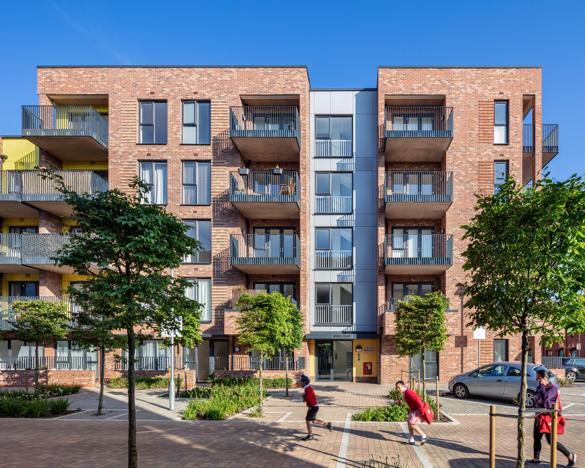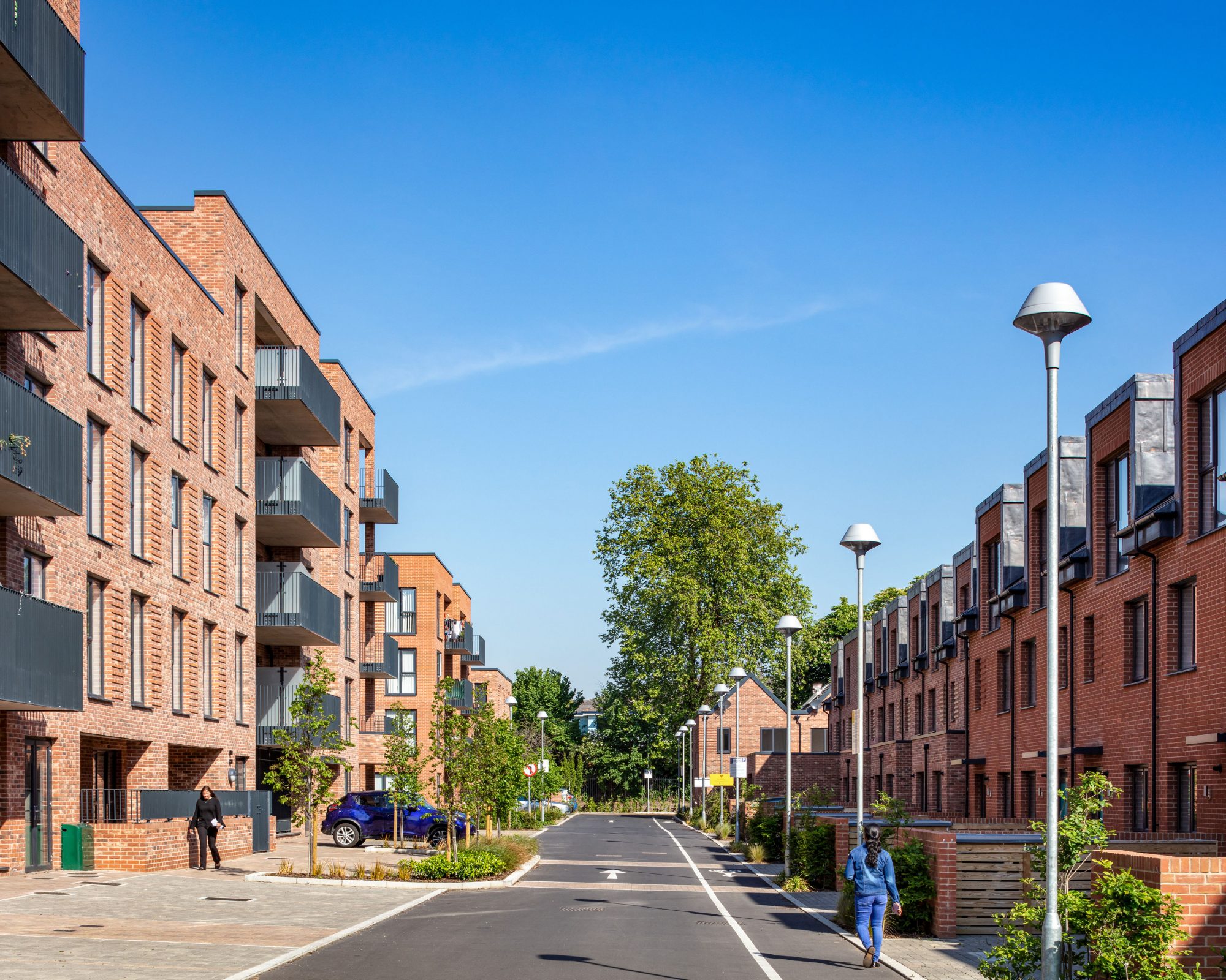 Reynard Mills delivers a range of family houses, mews houses and spacious apartments, alongside key community facilities and a creche. These new homes are set in an integrated landscape design within which the local street pattern is continued. This pedestrian friendly street network reflects home-zone principles, while interconnected green communal spaces, private gardens and children’s play spaces provide much needed amenity space for residents.