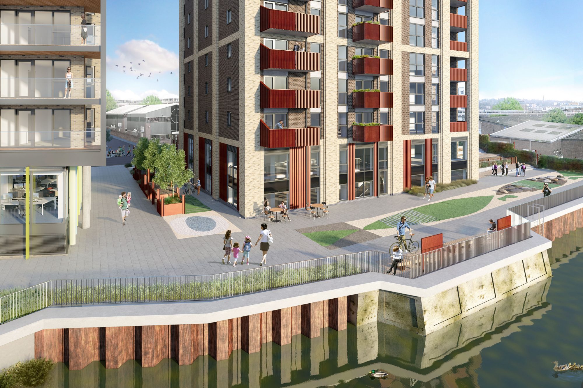 Through a simple material palette of light and dark brick, concrete soffits and a plinth of textured metalwork, the building celebrates the industrial legacy of the area. Subtle detailing draws from architectural elements across both Greenwich and Deptford, uniting both sides of the Creek.