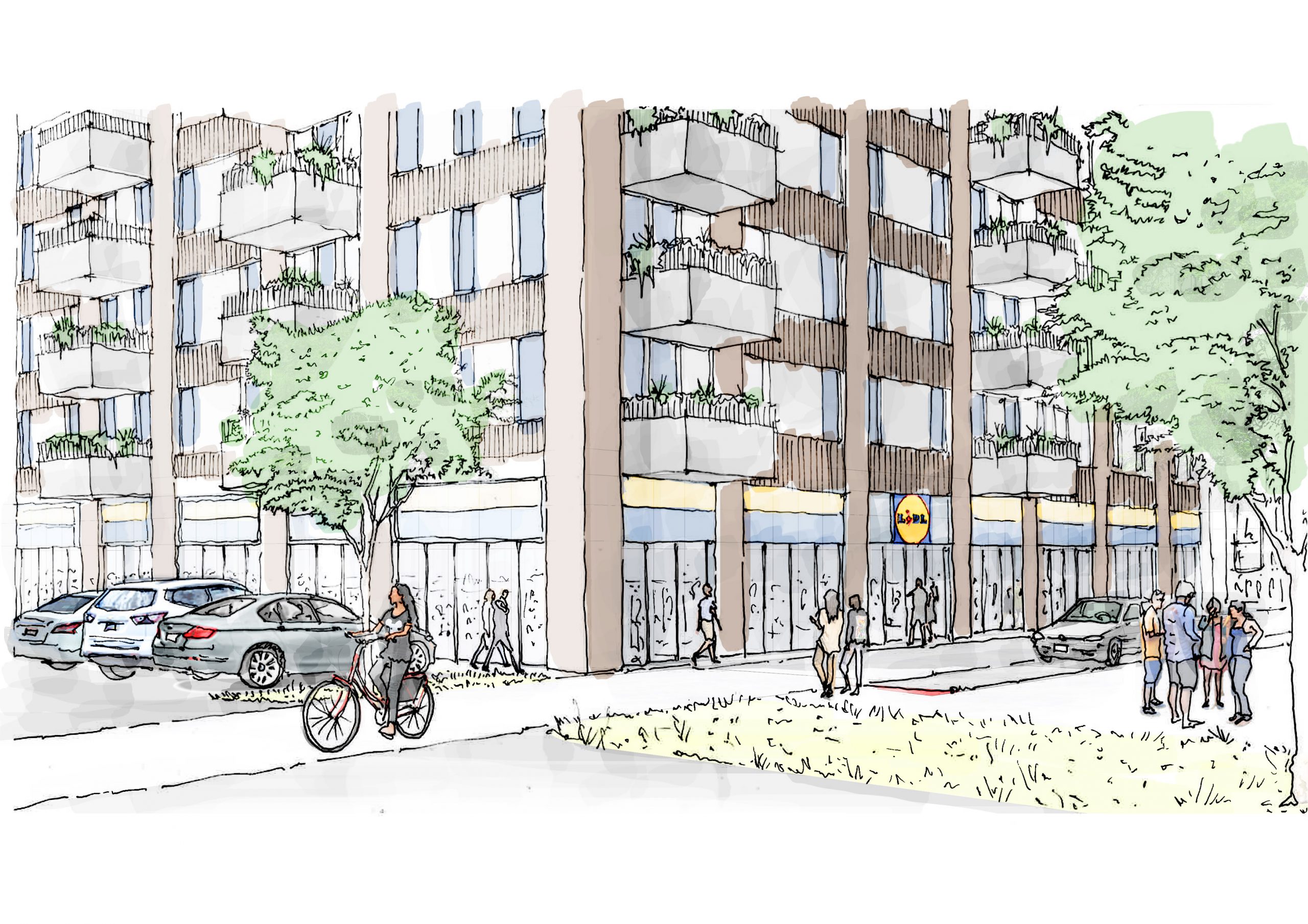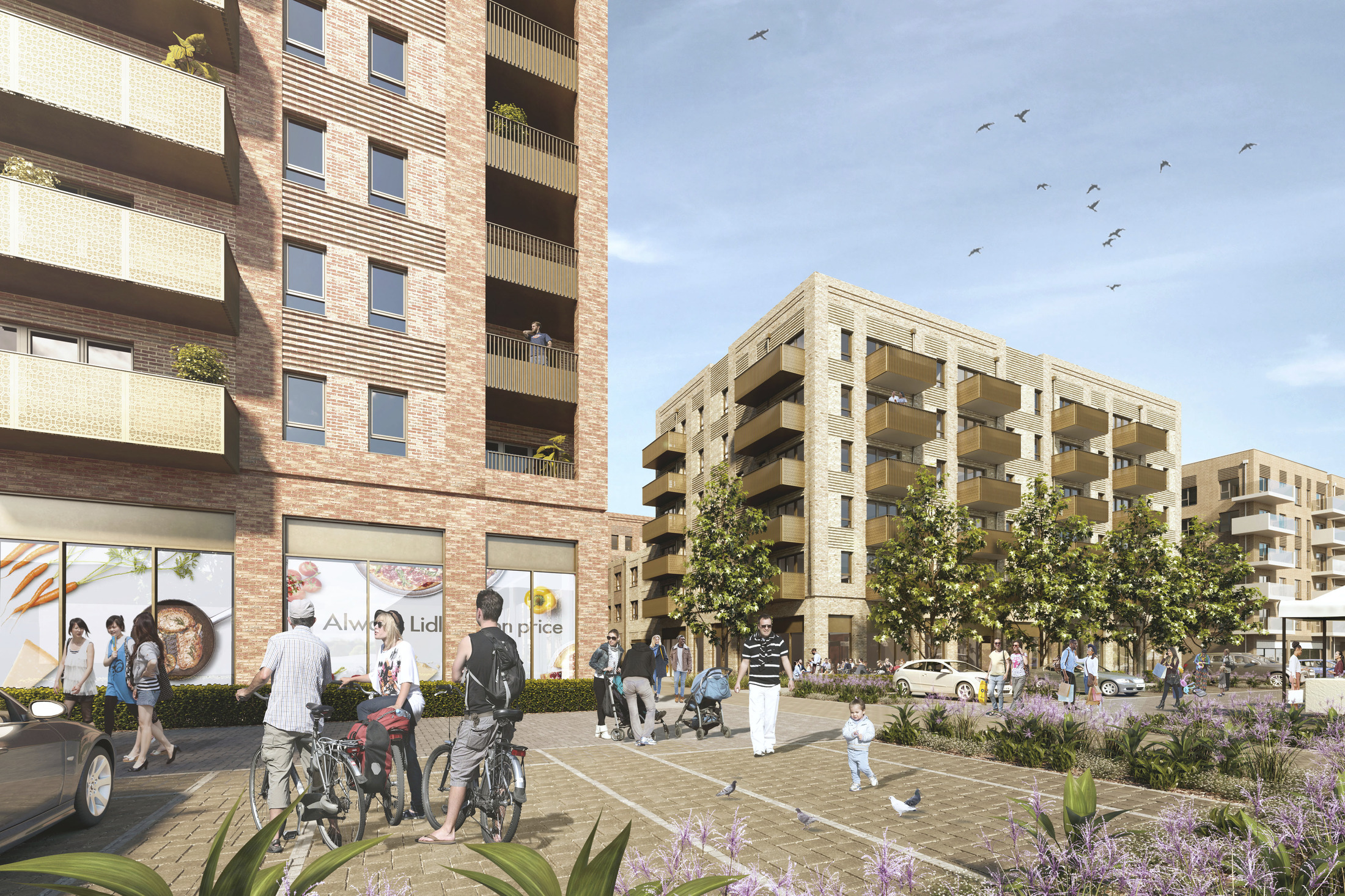 The new homes will provide high quality green amenity spaces for the residents while minimising the visibility of car parking and hard surfaces through the introduction of landscaped podiums within the residential blocks. The scheme will increase the provision of affordable housing and form a new and vibrant environment for the local community.