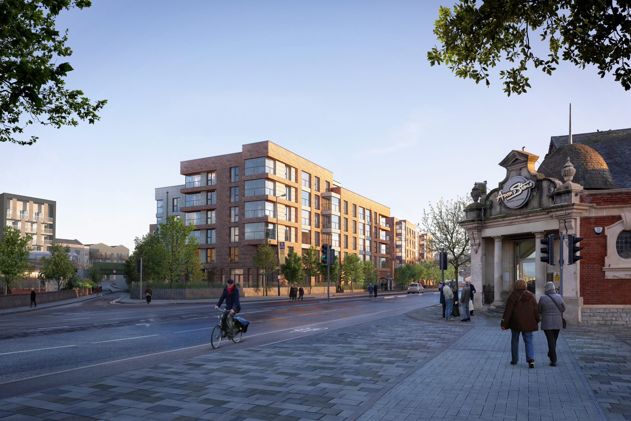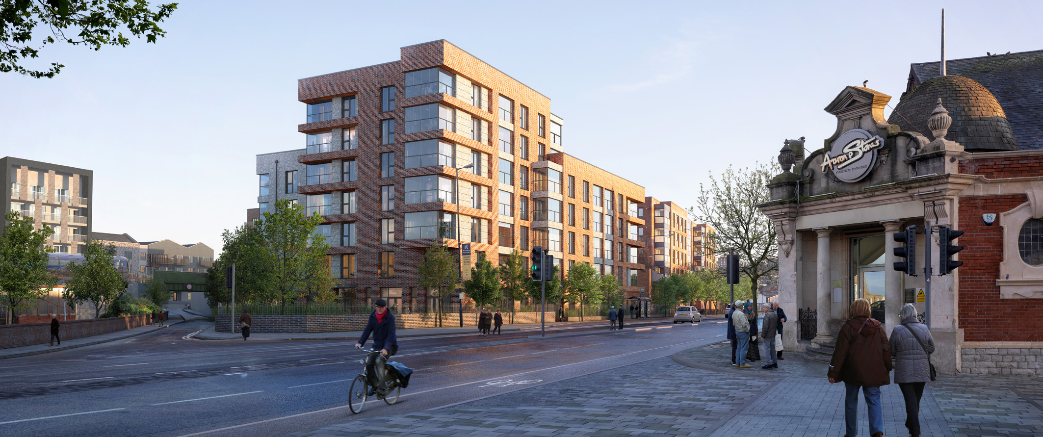 BPTW were appointed by mhs homes to develop a residential scheme for St. Clements House as part of our continued work in the local area. The five to seven-storey building was designed to be highly accessible and comply with Lifetime Homes regulations. The design overcame site constraints, such as the proximity to a railway line and busy road, by carefully positioning the building’s mass and orientation so the apartments benefit from good views over Rochester Castle and Cathedral, accompanied by a new, tree-lined boulevard to buffer lower floors and the use of external amenity areas to provide ample space around the building.