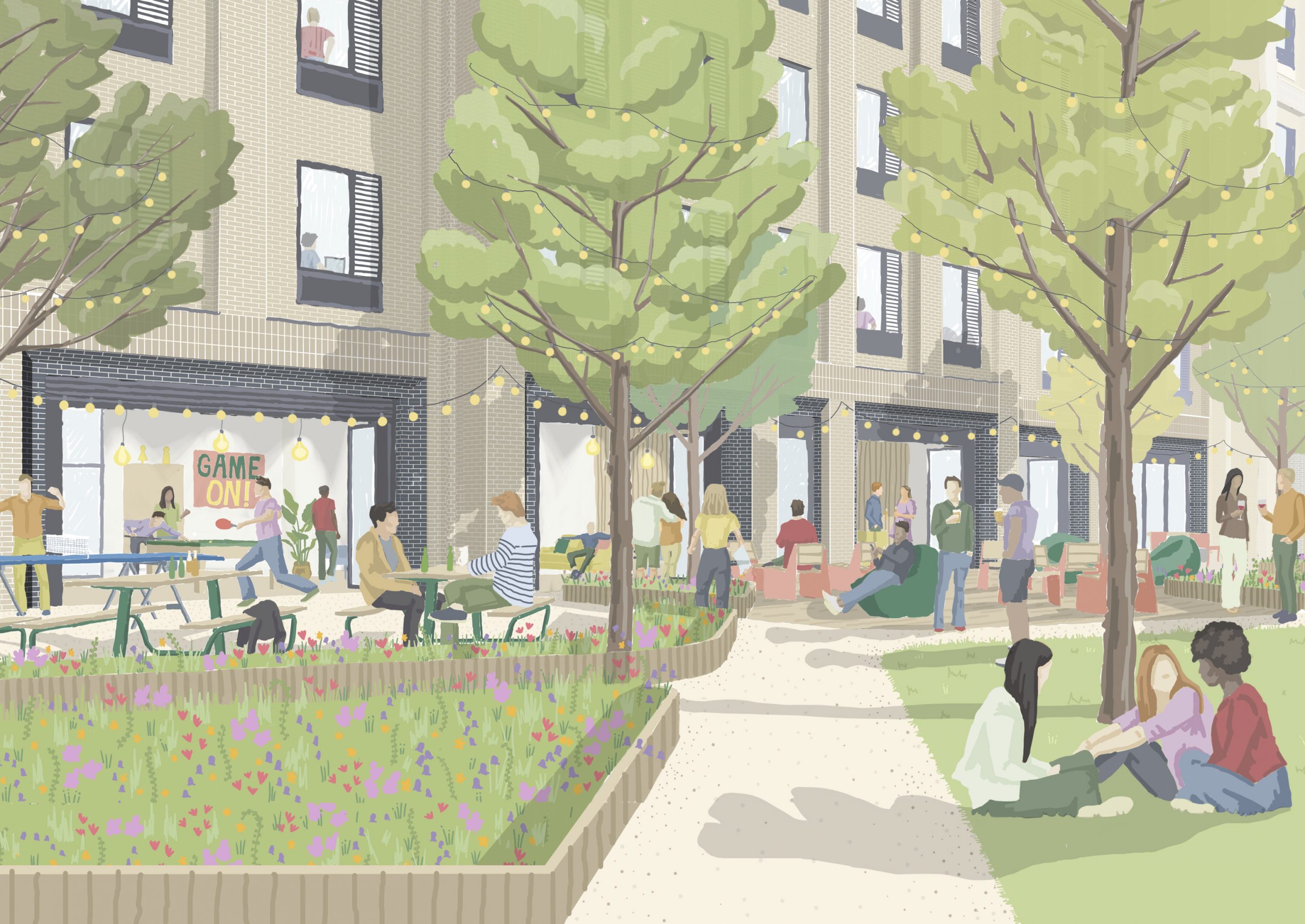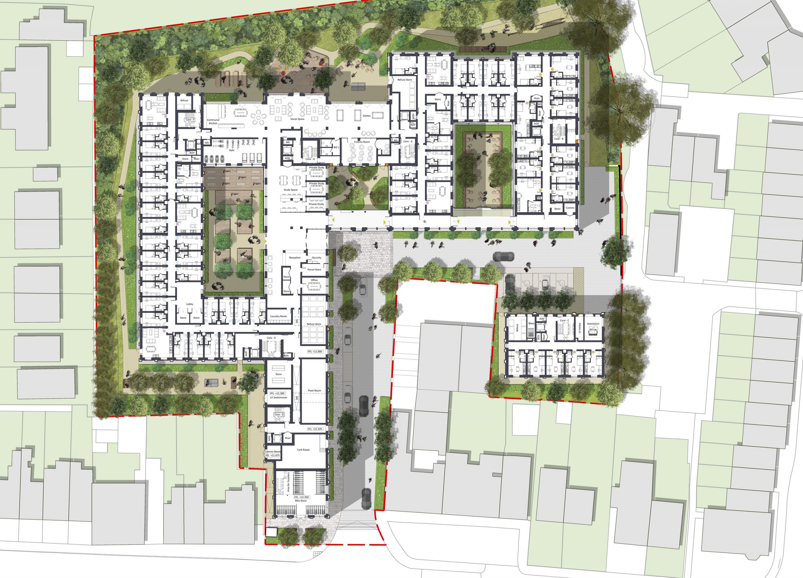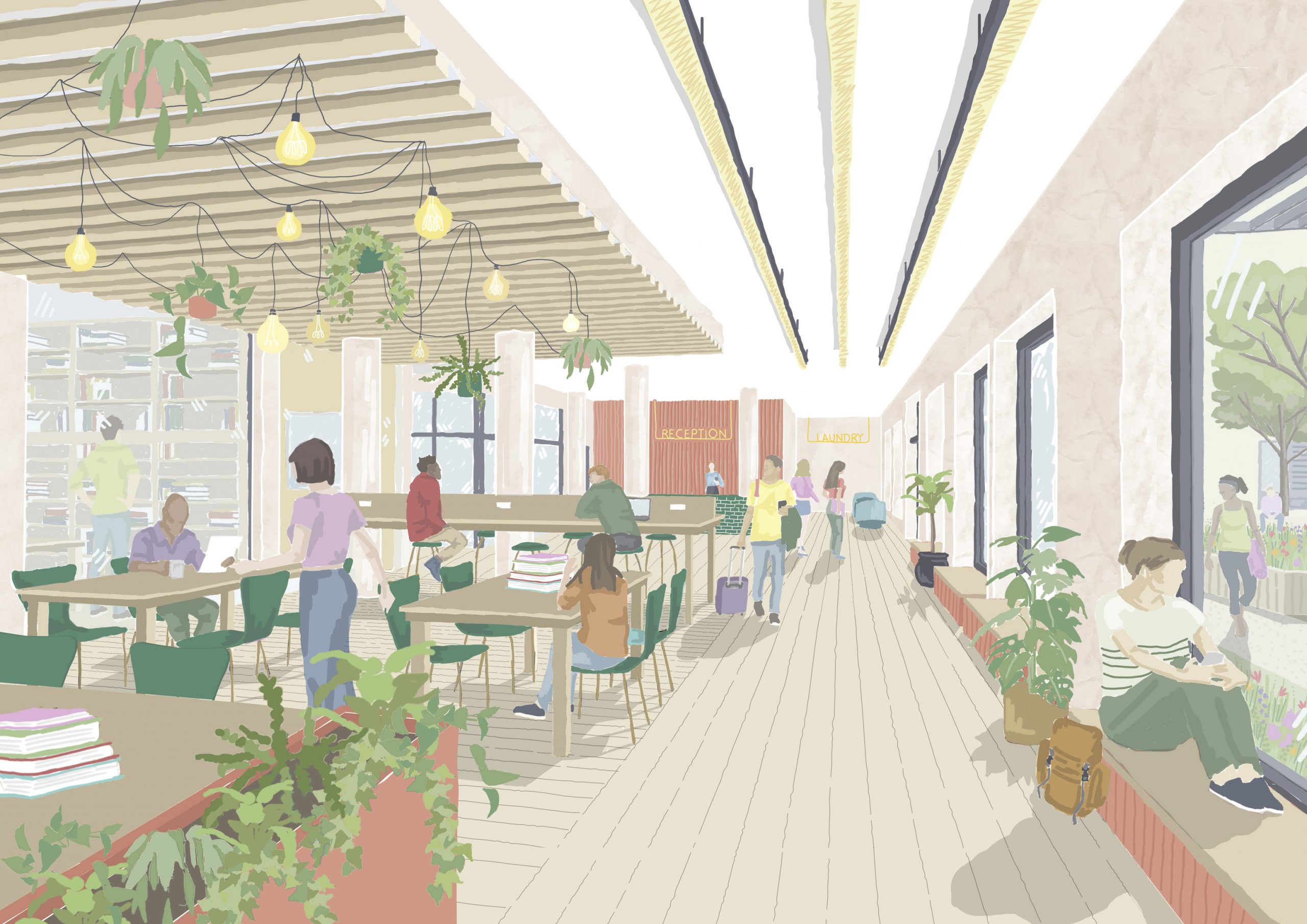 Designed for Cambria Property Investments, Sturry Road is a 400-room student accommodation scheme near Canterbury’s historic centre created with accessible spaces for socialising and learning to support student wellbeing.