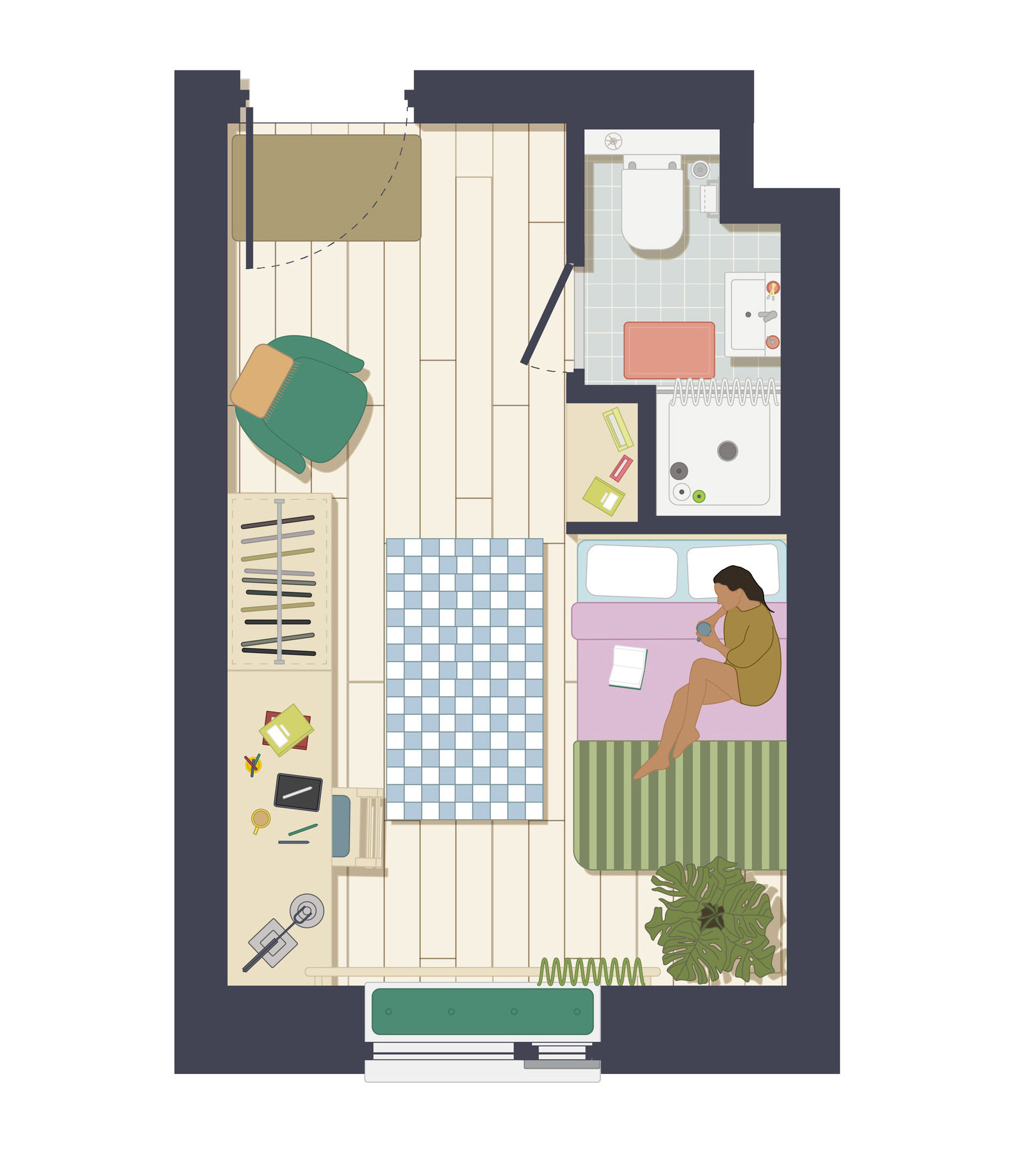 Currently in development, the design puts student wellbeing front and centre with accessible spaces for socialising and learning, including a cinema, gym, communal kitchen, games room, and study spaces that combat loneliness. A range of bedroom types are available to cater to students’ varied needs and budgets, including ensuite rooms, standard studio rooms and premium studio rooms.