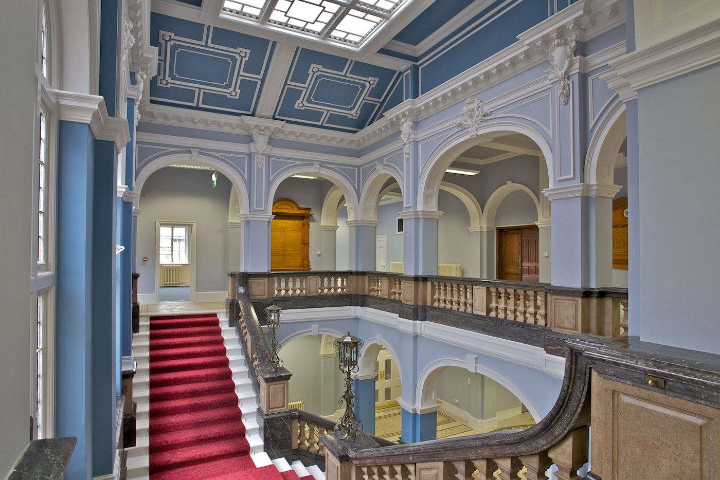 Works to the original Edwardian Baroque town hall involved complete external and internal refurbishment, including the grand foyer and the Moselle Room with its stunning Moorish-Jacobean style ceiling. Restoration of the brickwork and stonemasonry was also undertaken, along with repairs to the original timber windows, large marble staircase and intricate Italian terrazzo mosaic floor tiling.