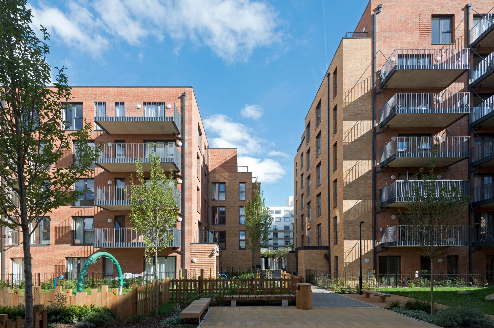 Watts Grove was recently recognised by the NLA as a leading example of public housing in London. Situated in Tower Hamlets, Watts Grove forms an architectural response to the historic fabric of the area and offers a mix of housing typologies to address the requirements of a diverse community. Complementing its surrounding environment, the houses and apartment blocks – ranging in height from 3 to 7 storeys – connect to the existing streets whilst introducing a new home zone that assists in reducing the urban block.