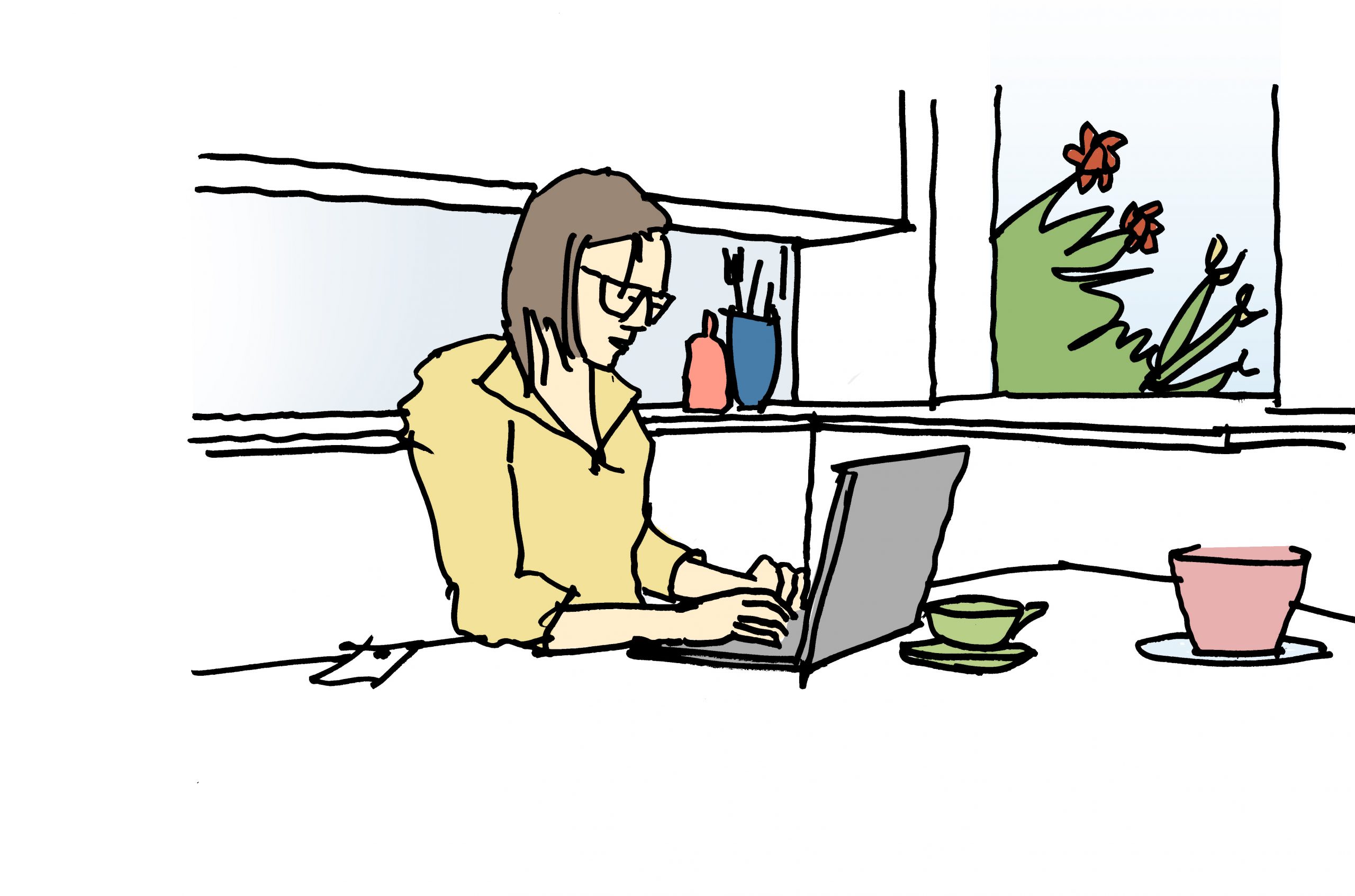 Vignette illustrating a resident working on a laptop, showing the necessity to provide adaptable domestic spaces that cater for modern live-work arrangements.